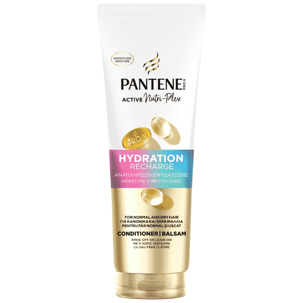 Ανακαλύψτε το Μαλακτικό Pantene Moisture Recharge, την απόλυτη λύση για φριζαρισμένα ή ξηρά μαλλιά. Αυτό το μαλακτικό για χρήση με ή χωρίς ξέβγαλμα διαθέτει ελαφριά σύνθεση που προσφέρει βαθιά ενυδάτωση και θρέψη, για ορατά υγιή μαλλιά. Χρησιμοποιήστε το σε συνδυασμό με τα προϊόντα της σειράς Moisture Recharge, για μια ολοκληρωμένη ενυδατική ρουτίνα περιποίησης των μαλλιών σας. Ολοκληρώστε τη ρουτίνα σας με το προστατευτικό θερμότητας που προσφέρει ακόμα περισσότερη ενυδάτωση, όταν ενεργοποιείται με τη θερμότητα.