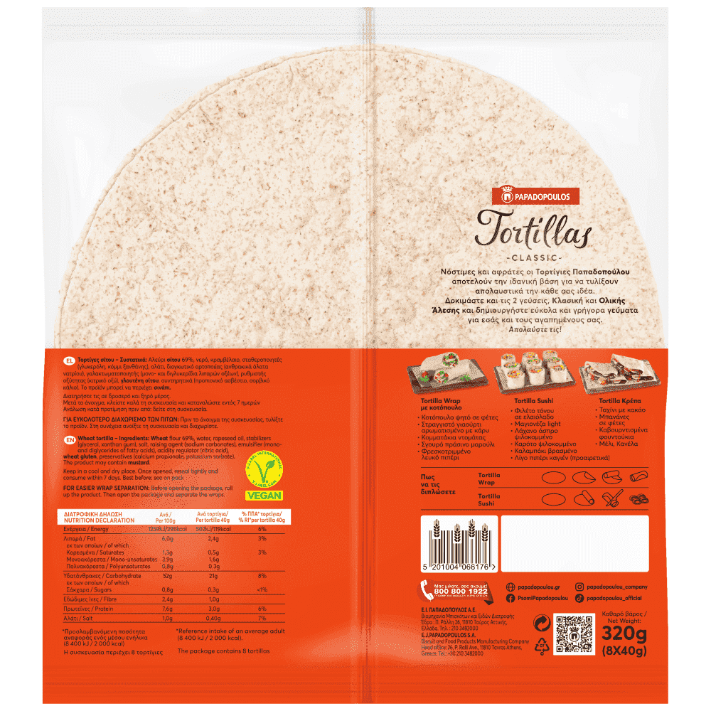 Iδανική επιλογή για ελαφριά, νόστιμα γεύματα για όλες τις ώρες. Δημιουργήστε ξεχωριστούς γλυκούς και αλμυρούς συνδυασμούς για μικρούς και μεγάλους, για εσάς και τους φίλους σας, για ένα γρήγορο snack στο γραφείο ή ένα ελαφρύ, νόστιμο βραδινό γεύμα στο σπίτι. Είναι νόστιμες και μαλακές για να τυλίξουν εύκολα και γρήγορα την κάθε σας ιδέα.