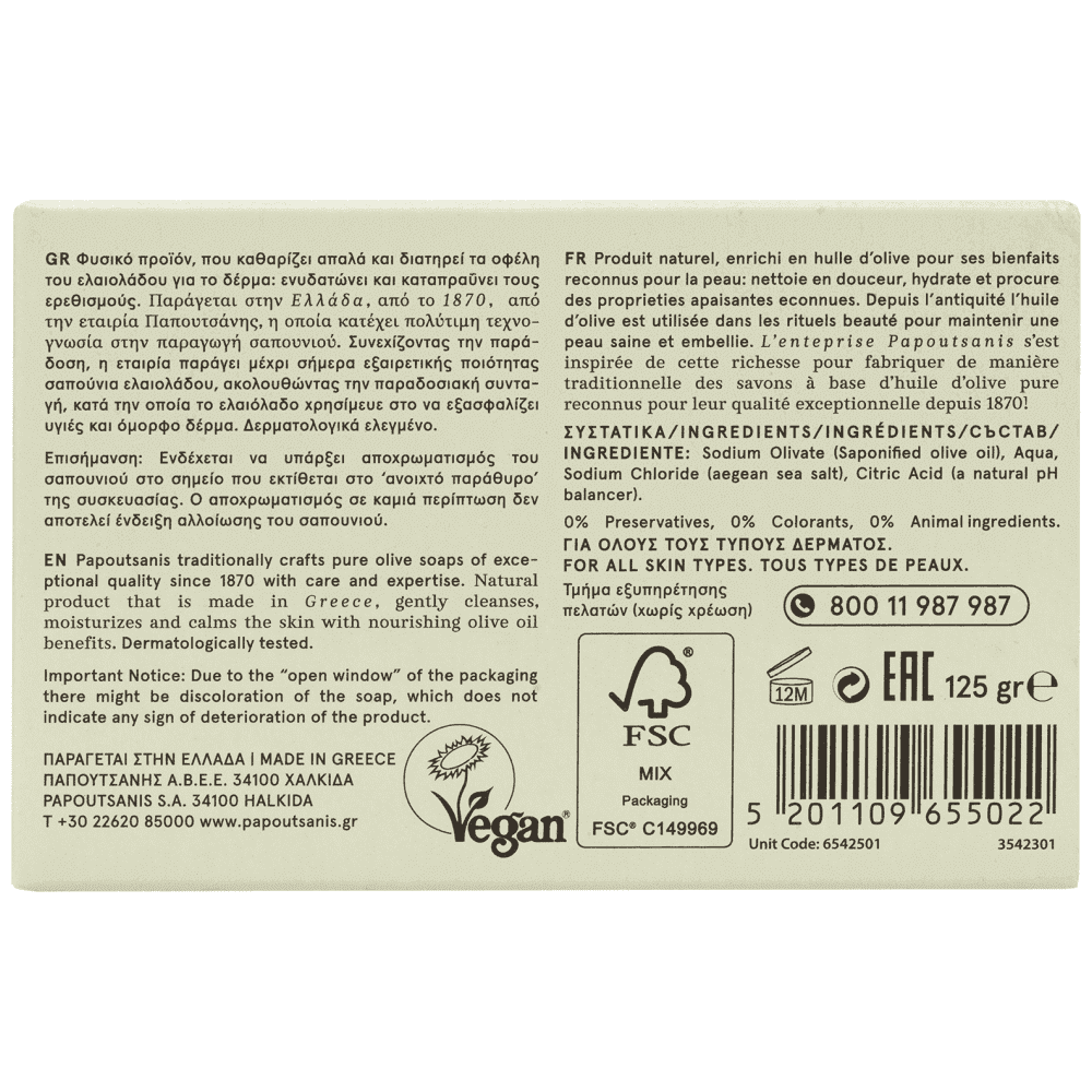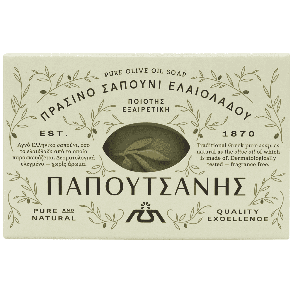 Αγνό όσο το ελαιόλαδο από το οποίο παρασκευάζεται, το παραδοσιακό πράσινο σαπούνι ΠΑΠΟΥΤΣΑΝΗΣ φροντίζει το πρόσωπο, τα μαλλιά και το σώμα, εδώ και 150 χρόνια. Δερματολογικά ελεγμένο. ΔΕΝ ΠΕΡΙΕΧΕΙ: Parabens, mineral oil, συνθετικά χρώματα και συστατικά ζωικής προέλευσης.