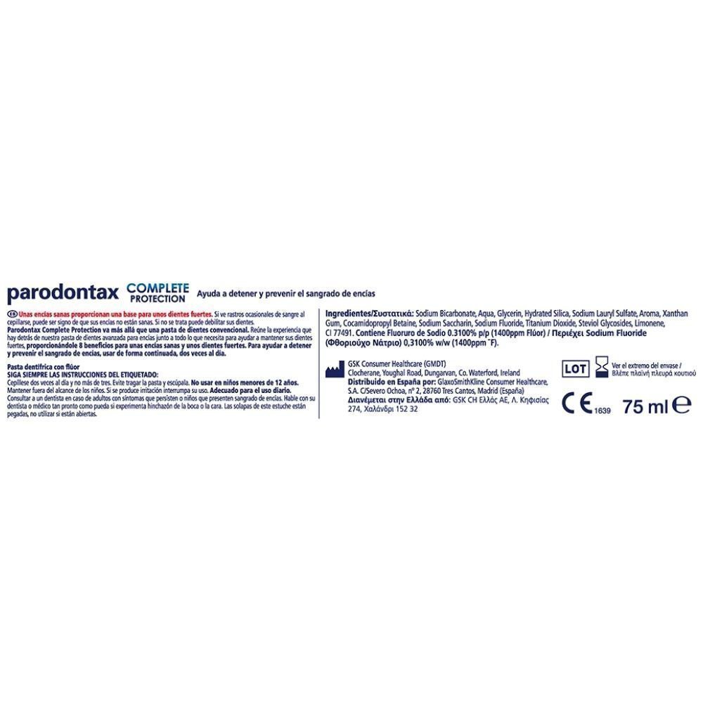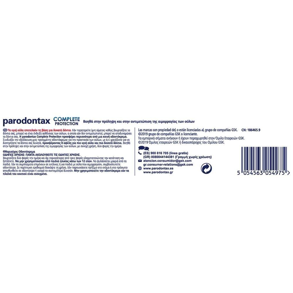PARODONTAX COMPLETE PROTECTION EXTRA FRESHΗ Parodontax Complete Protection Extra Fresh έχει 8 ειδικά σχεδιασμένα οφέλη που σας βοηθούν να διατηρείτε τα ούλα σας υγιή και τα δόντια σας δυνατά. Προσφέρει επίσης δροσερή γεύση μέντας.Αφαιρώντας με φυσικό τρόπο τη συσσωρευμένη βακτηριακή πλάκα από τη γραμμή των ούλων, η οδοντόκρεμα Parodontax βοηθά να διατηρείται σφιχτή η γραμμή των ούλων και είναι 4Χ πιο αποτελεσματική* από μια συνηθισμένη οδοντόκρεμα στην αντιμετώπιση της βασικής αιτίας της αιμορραγίας των ούλων. Είναι κλινικά αποδεδειγμένο, ότι όταν χρησιμοποιείται δύο φορές την ημέρα, βοηθά στην πρόληψη και την αντιμετώπιση της αιμορραγίας των ούλων.Συμπληρώστε την καθημερινή φροντίδα του στόματός σας με τις οδοντόβουρτσες Parodontax.ΑΝΑΚΑΛΥΨΤΕ ΤΑ 8 ΟΦΕΛΗ ΤΗΣ PARODONTAX COMPLETE PROTECTIONΤα ούλα αποτελούν τα θεμέλια για υγιή δόντια, δεν αναγνωρίζουμε όμως πάντα το ζωτικό ρόλο που παίζουν. Συχνά επιλέγουμε μια οδοντόκρεμα διότι υπόσχεται να διατηρεί τα δόντια δυνατά, λευκά και καθαρά, ενώ η φροντίδα των ούλων είναι εξίσου σημαντική - ιδιαίτερα για τον έναν στους δύο από εμάς που παρατηρεί αίμα κατά το βούρτσισμα.Αν εντοπίσετε ένα ροζ ή κόκκινο ίχνος κατά το βούρτσισμα ή τη χρήση οδοντικού νήματος, ενδέχεται να είναι σημάδι ότι έχετε ούλα που αιμορραγούν,ένα πρώτο σημάδι της ασθένειας των ούλων.Η οδοντόκρεμα Parodontax Complete Protection έχει 8 ειδικά σχεδιασμένα οφέλη για πιο υγιή ούλα και πιο δυνατά δόντια. Βουρτσίζοντας δύο φορές την ημέρα με την οδοντόκρεμα Parodontax Complete Protection δε χρειάζεται να επιλέξετε αν θα φροντίσετε τα δόντια ή τα ούλα σας - μπορείτε να φροντίζετε και τα δύο ταυτόχρονα.ΤΑ 8 ΟΦΕΛΗ ΤΗΣ PARODONTAX COMPLETE PROTECTIONΒοηθάει στην πρόληψη και την αντιμετώπιση της Αιμορραγίας των ΟύλωνΕλαττώνει τα κόκκινα ούλα με Φλεγμονή 4Χ πιο αποτελεσματική στην αφαίρεση της πλάκας* Βοηθά ώστε να διατηρηθεί σφιχτά η γραμμή των ούλων Καταπολεμά την δυσάρεστη αναπνοή Ενδυναμώνει τον σμάλτο Καθαρίζει σε βάθος Λευκαίνει ήπια τα δόντια Αν αγνοήσετε τα πρώτα συμπτώματα της ασθένειας των ούλων ή της ουλίτιδας και δεν τα αντιμετωπίσετε εγκαίρως, μπορεί να εξελιχθούν σε μια πολύ πιο σοβαρή και μη αναστρέψιμη κατάσταση που λέγεται περιοδοντίτιδα, η οποία μπορεί να προκαλέσει απώλεια των δοντιών.