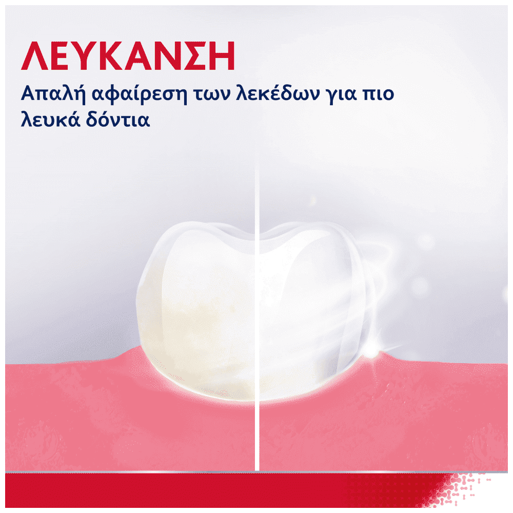 Βασικά Πλεονεκτήματα: 1. Ενδυνάμωση: Καταπολεμά τα βακτήρια της οδοντικής πλάκας κατά μήκος της γραμμής των ούλων για πιο δυνατή και σφιχτή σφράγιση μεταξύ των ούλων και των δοντιών. 2. Προστασία: Βοηθά στην πρόληψη της συσσώρευσης των βακτηρίων της οδοντικής πλάκας για να διατηρεί τα ούλα υγιή καθημερινά*