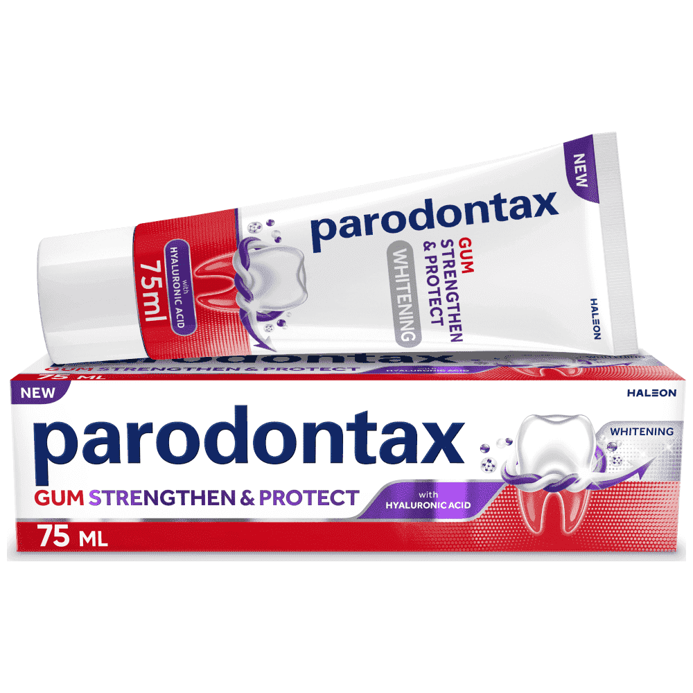 Με την καθημερινή οδοντόκρεμα parodontax Gum Strengthen & Protect, μπορείτε να απολαμβάνετε προστασία που διαρκεί για δυνατά ούλα και δόντια*