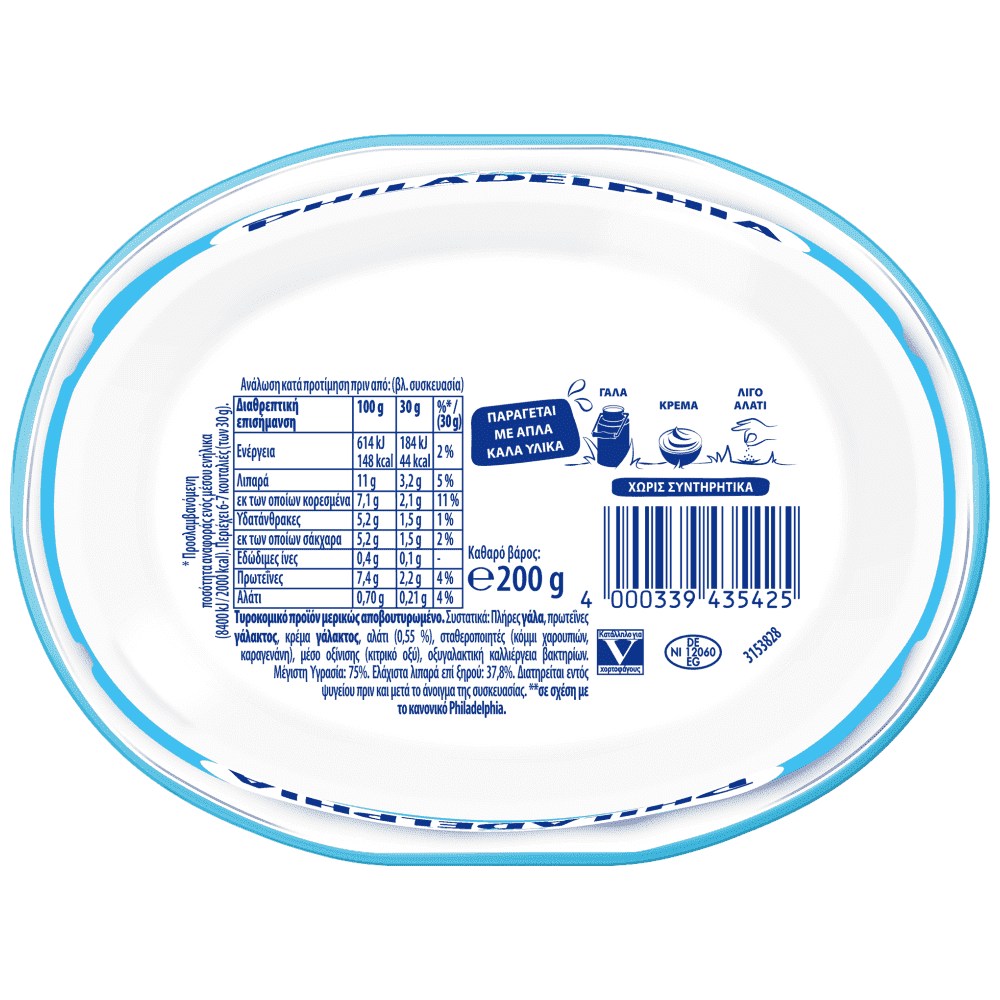 Η αγαπημένη, απολαυστική και πλούσια γεύση του Philadelphia με κρεμώδη υφή και 30% λιγότερα λιπαρά. Ιδανική επιλογή για αλμυρές ή γλυκές συνταγές.Το Philadelphia είναι φανταστικά ευέλικτο, είτε το αλείφετε σε ένα κλασικό κουλούρι με καπνιστό σολομό είτε το χρησιμοποιείτε για να ψήσετε ένα απολαυστικό cheesecake. Ένας πραγματικός φίλος για το φαγητό σου.