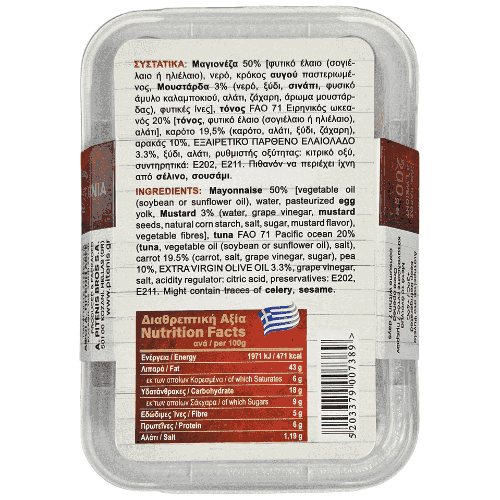 | Ενέργεια / Energy | 1971 kJ / 471 kcal |