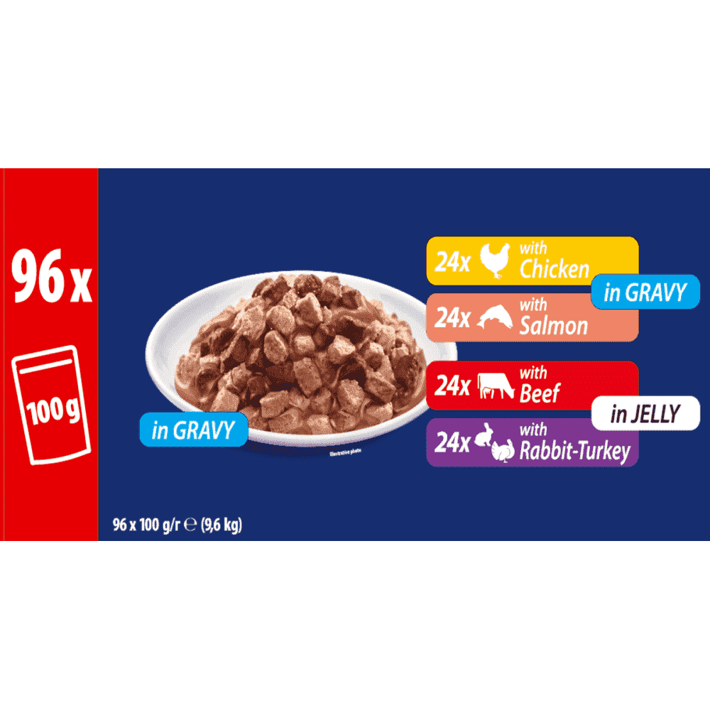 Πλήρης τροφή για ενήλικες γάτες με σολομό σε σάλτσα.