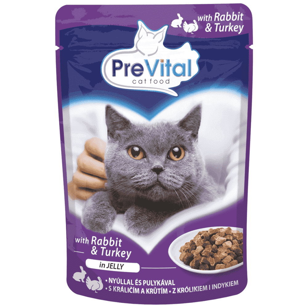 Πλήρης τροφή για κατοικίδια ζώα για ενήλικες γάτες με κουνέλι και γαλοπούλα σε ζελέ.