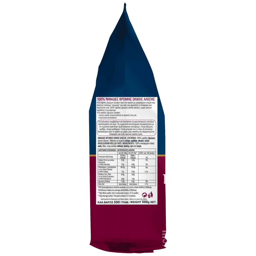 Απολαύστε τα με γάλα, γιαούρτι ή ακόμα και σκέτα, οποιαδήποτε στιγμή της ημέρας.Νιφάδες βρώμης ολικής άλεσης 500g