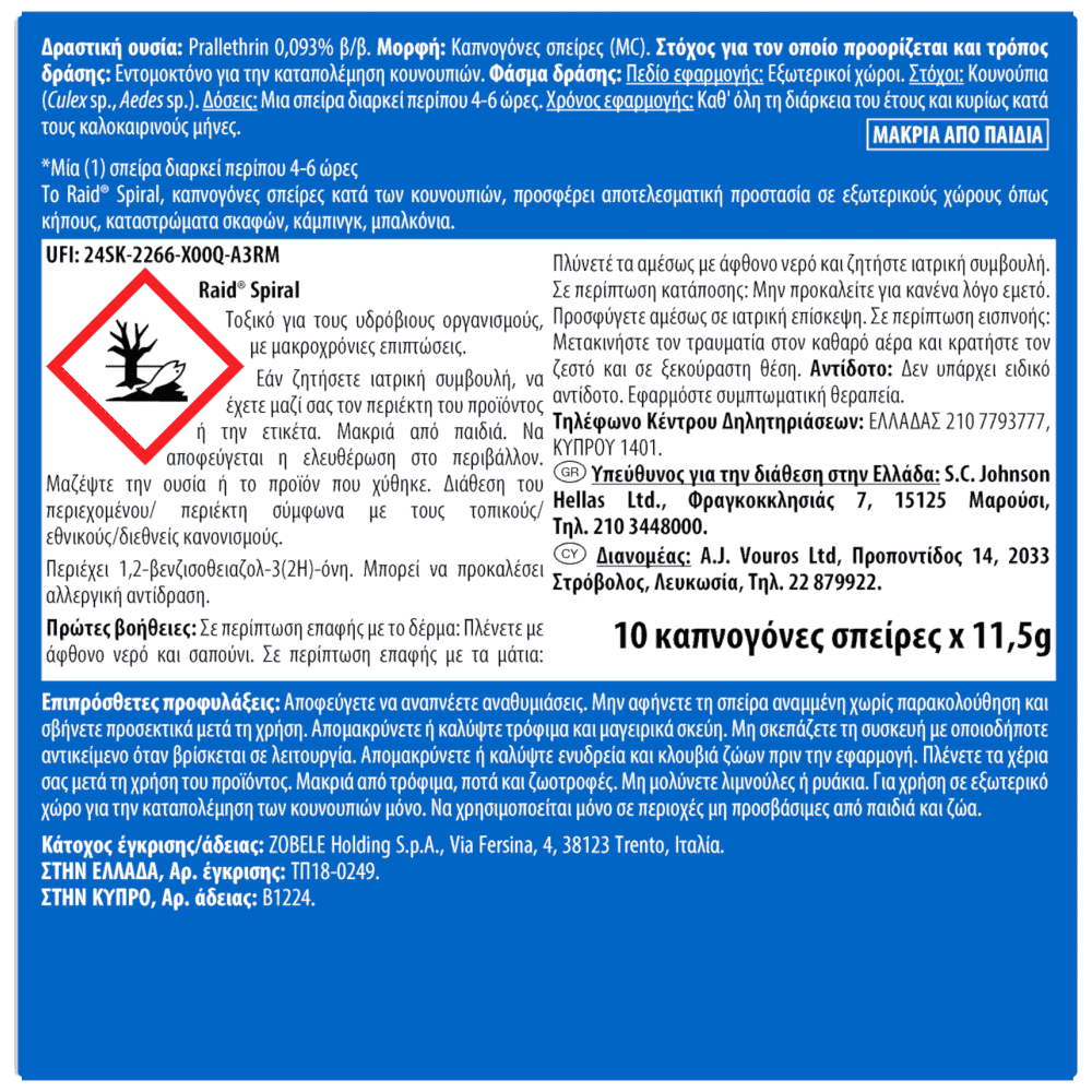 Raid Spiral Καπνογόνες Σπείρες Κατά Των Κουνουπιών 10τεμ