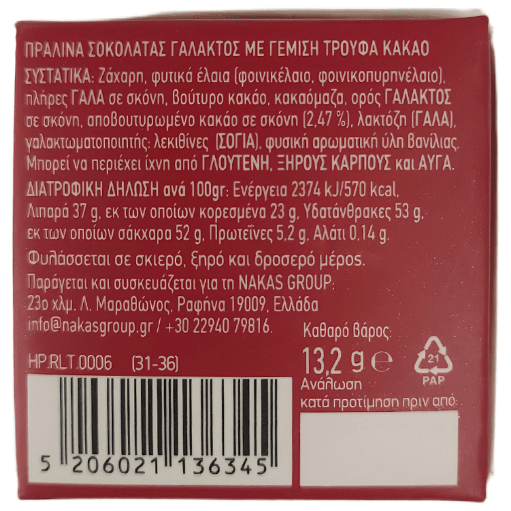 Περιέχει: Ξηροί καρποί με κέλυφος, Σόγια, Γάλα,