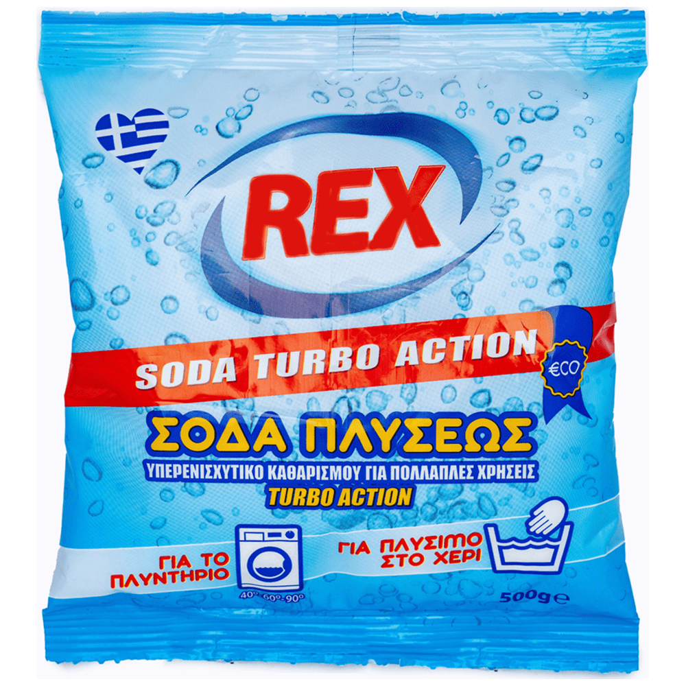 Η σόδα πλύσεως REX είναι το παραδοσιακό προϊόν που ανταποκρίνεται στην παραδοσιακά «σύγχρονη επιθυμία» της νοικοκυράς απόλυτη καθαριότητα σε καλή τιμή. H σόδα πλύσεως δρα ευεργετικά σε κάθε πλύση: