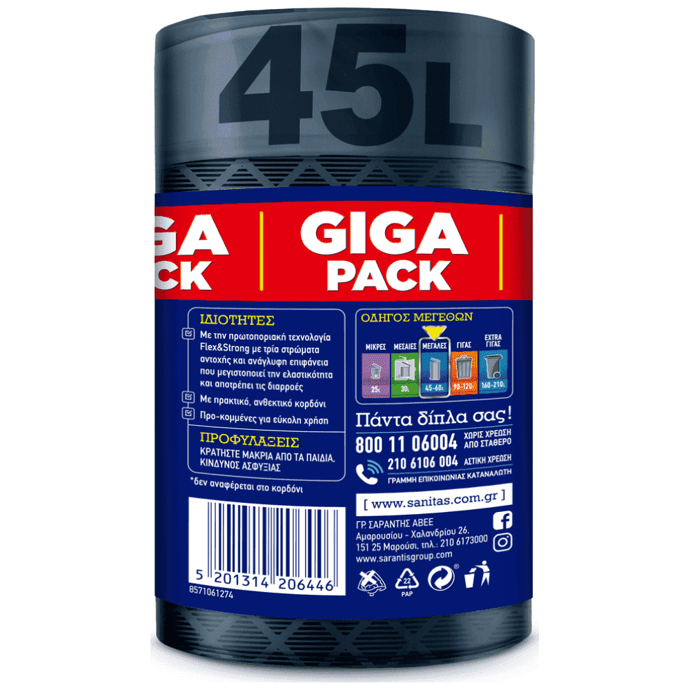Sanitas Flex & Strong Σακούλες Απορ. με Κορδόνι 45l Large Gigapack 30τεμ