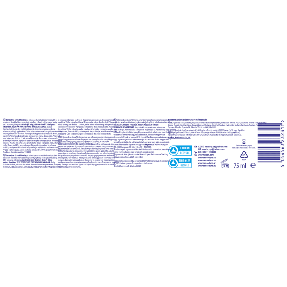 Sensodyne Gentle Whitening Παρέχει λεύκανση ειδικά σχεδιασμένη για ανθρώπους με ευαίσθητα δόντια Απομακρύνει τους λεκέδες και γυαλίζει την επιφάνεια του δοντιού Παρέχει ανακούφιση μεγάλης διάρκειας από την ευαισθησία** Παρέχει όλα τα οφέλη μιας κανονικής οδοντόκρεμας για καθημερινή χρήση