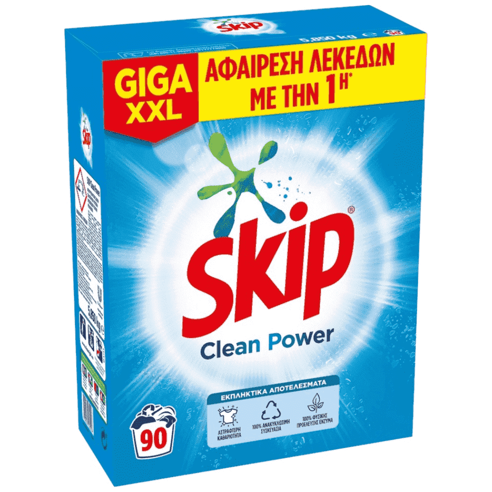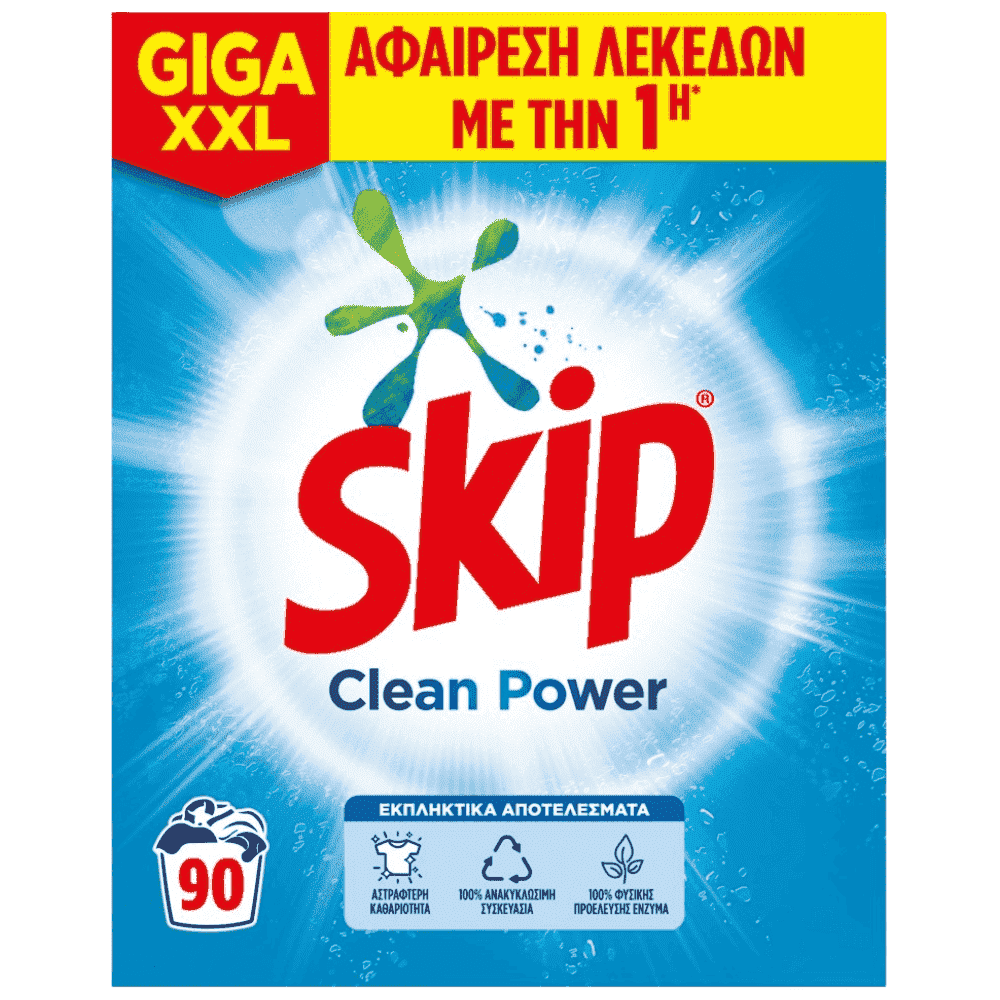Skip Απορρυπαντικό Πλυντηρίου Ρούχων Clean Power 90Μεζ