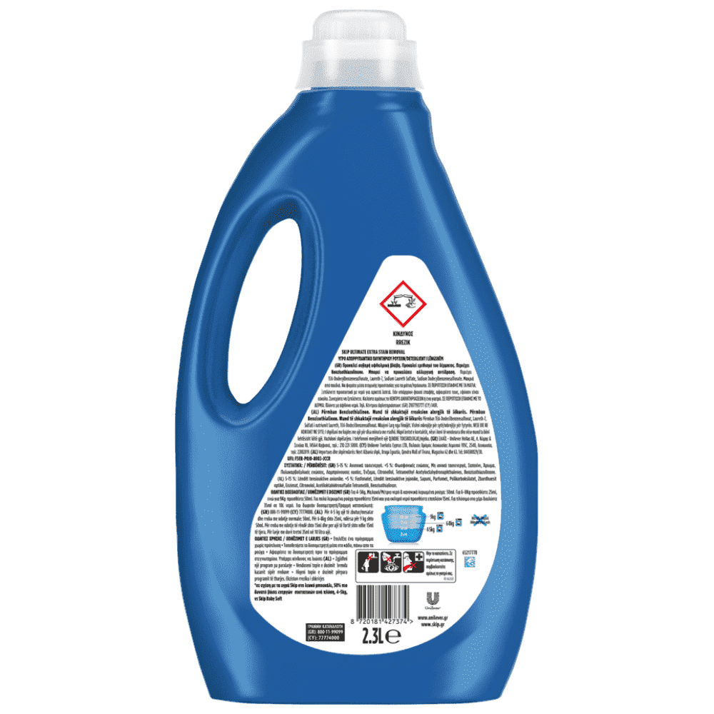 Το Skip Ultimate Extra Stain Removal, προσφέρει εξαιρετική αποτελεσματικότητα στην αφαίρεση λεκέδων, απαλή φροντίδα στα ρούχα σας και φρεσκάδα που διαρκεί.