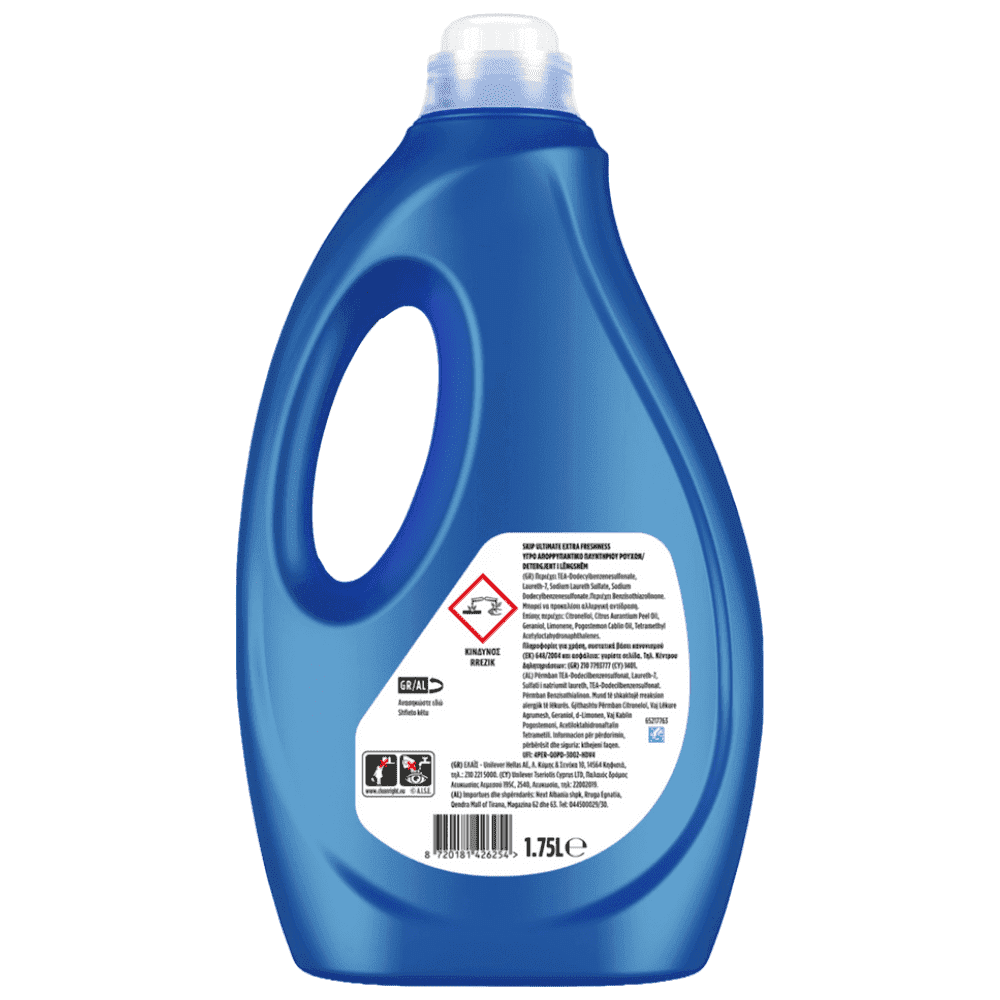 Το Skip Ultimate Fresh Power, προσφέρει εξαιρετική αποτελεσματικότητα στην αφαίρεση λεκέδων, απαλή φροντίδα στα ρούχα σας και φρεσκάδα που διαρκεί.