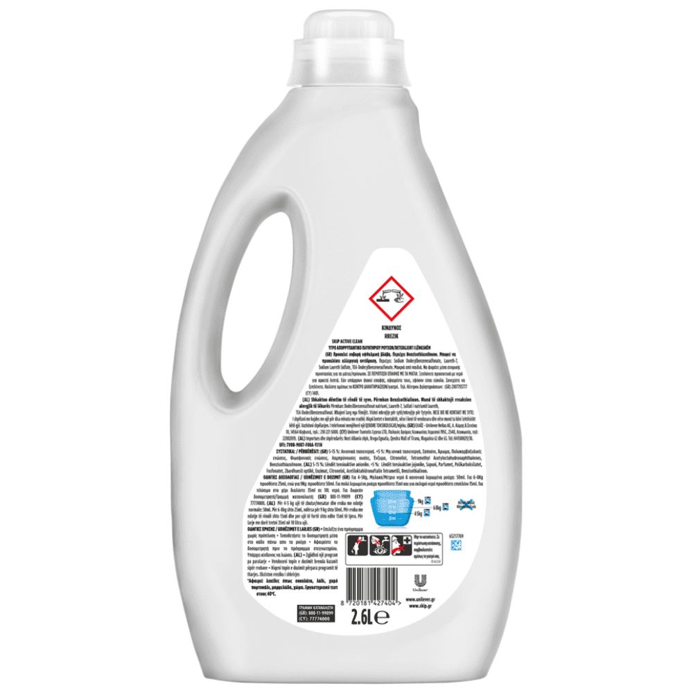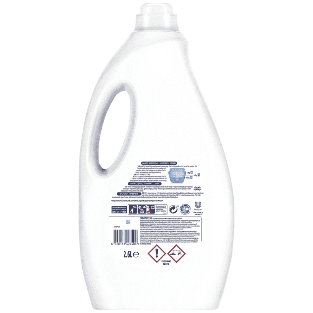 Το Skip Active Clean χαρίζει εκπληκτικά αποτελέσματα με την πρώτη πλύση! Αφαιρεί δύσκολους λεκέδες χαρίζοντας στα ρούχα σας ασύγκριτη καθαριότητα! Η πρωτοπόρα σύνθεσή του το καθιστά αποτελεσματικο και στο σύντομο πρόγραμμα! Μια δοκιμή θα σας πείσει!