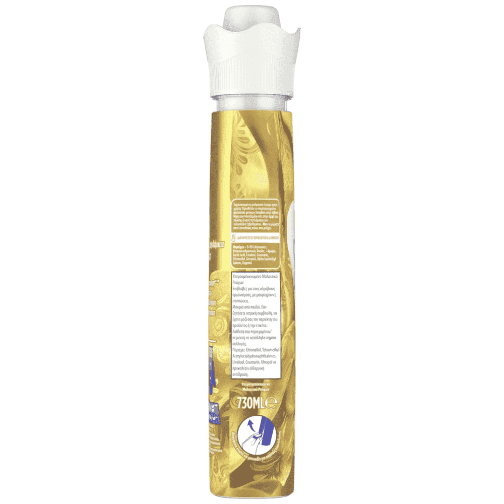 Περιέχει 5%-15% Κατιονικές Επιφανειοδραστικές Ουσίες, Άρωμα, Lactic Acid, Hexyl Cinnamal, Citronellol, Coumarin, Limonene, Eugenol, Benzyl Benzoate, Alpha-Isomethyl Ionone, Hydroxycitronellal, Benzyl Alcohol. Περιέχει Tetramethyl Acetyloctahydonaphthalenes. Μπορεί να προκαλέσει αλλεργική αντίδραση.