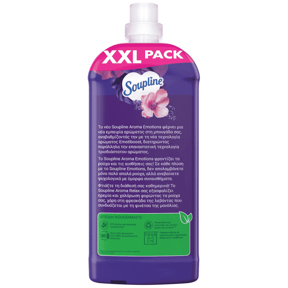 Το νέο Soupline Aroma Relax Μανόλια & Λεβάντα φέρνει μια νέα εμπειρία αρώματος στη μπουγάδα σας, αναβαθμίζοντας την με την νεα τεχνολογία αρώματος Emotiboost, διατηρώντας παράλληλα την επανασταστική τεχνολογία τριασδιάστατου αρώματος.