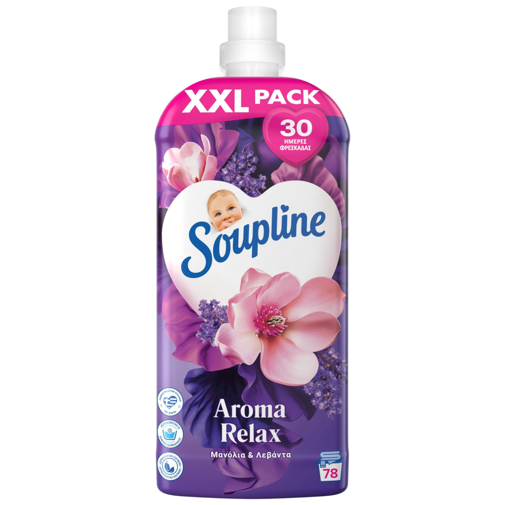 Το Soupline Aroma Relax σας εξασφαλίζει ηρεμία και χαλάρωση φορώντας τα ρούχας σας, χάρη στη φρεσκάδα της λεβάντας που συνδυάζεται με την φινέτσα της μανόλιας.