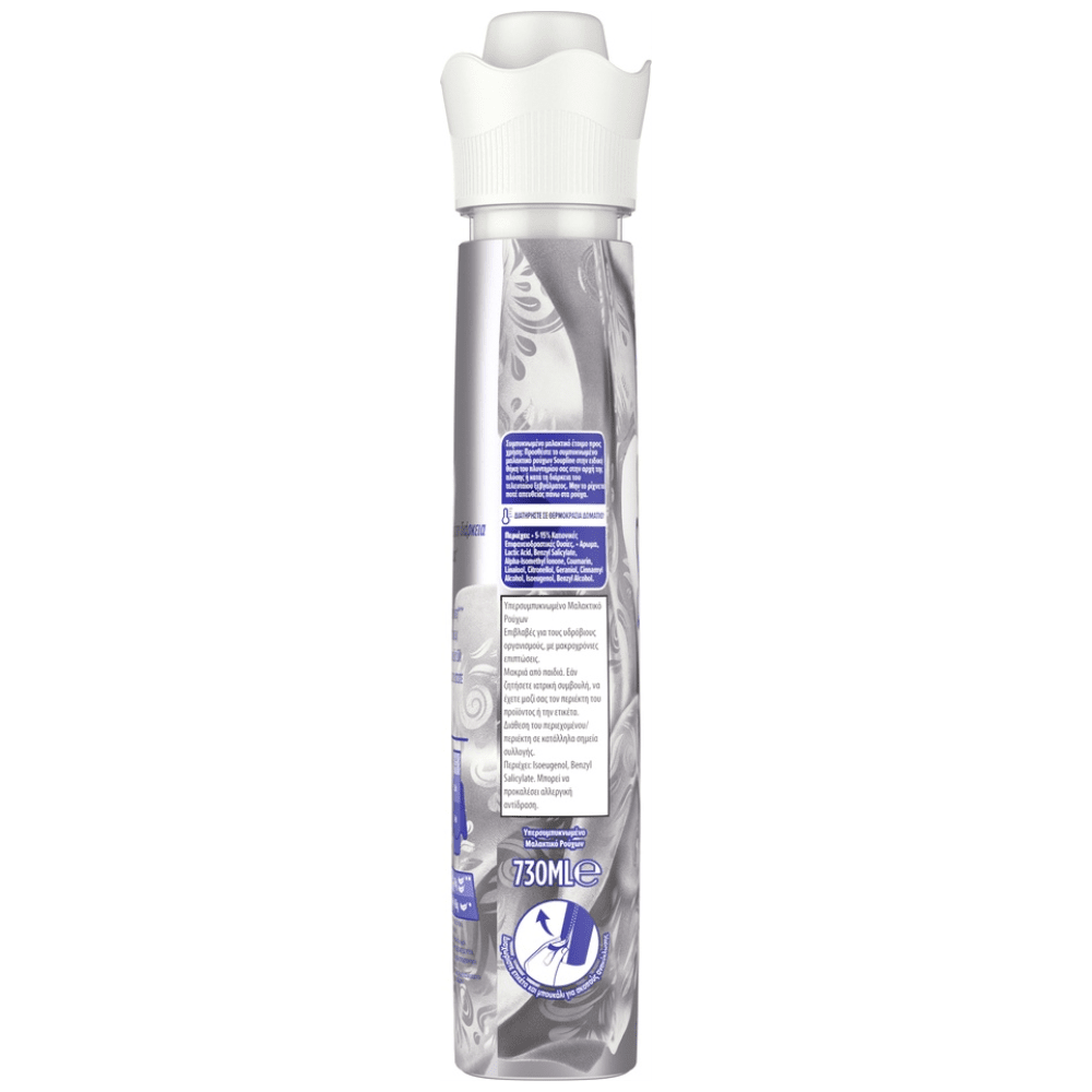 Περιέχει 5%-15% Κατιονικές Επιφανειοδραστικές Ουσίες, Άρωμα, Lactic Acid, Hexyl Cinnamal, Citronellol, Coumarin, Limonene, Eugenol, Benzyl Benzoate, Alpha-Isomethyl Ionone, Hydroxycitronellal, Benzyl Alcohol. Περιέχει Tetramethyl Acetyloctahydonaphthalenes. Μπορεί να προκαλέσει αλλεργική αντίδραση.
