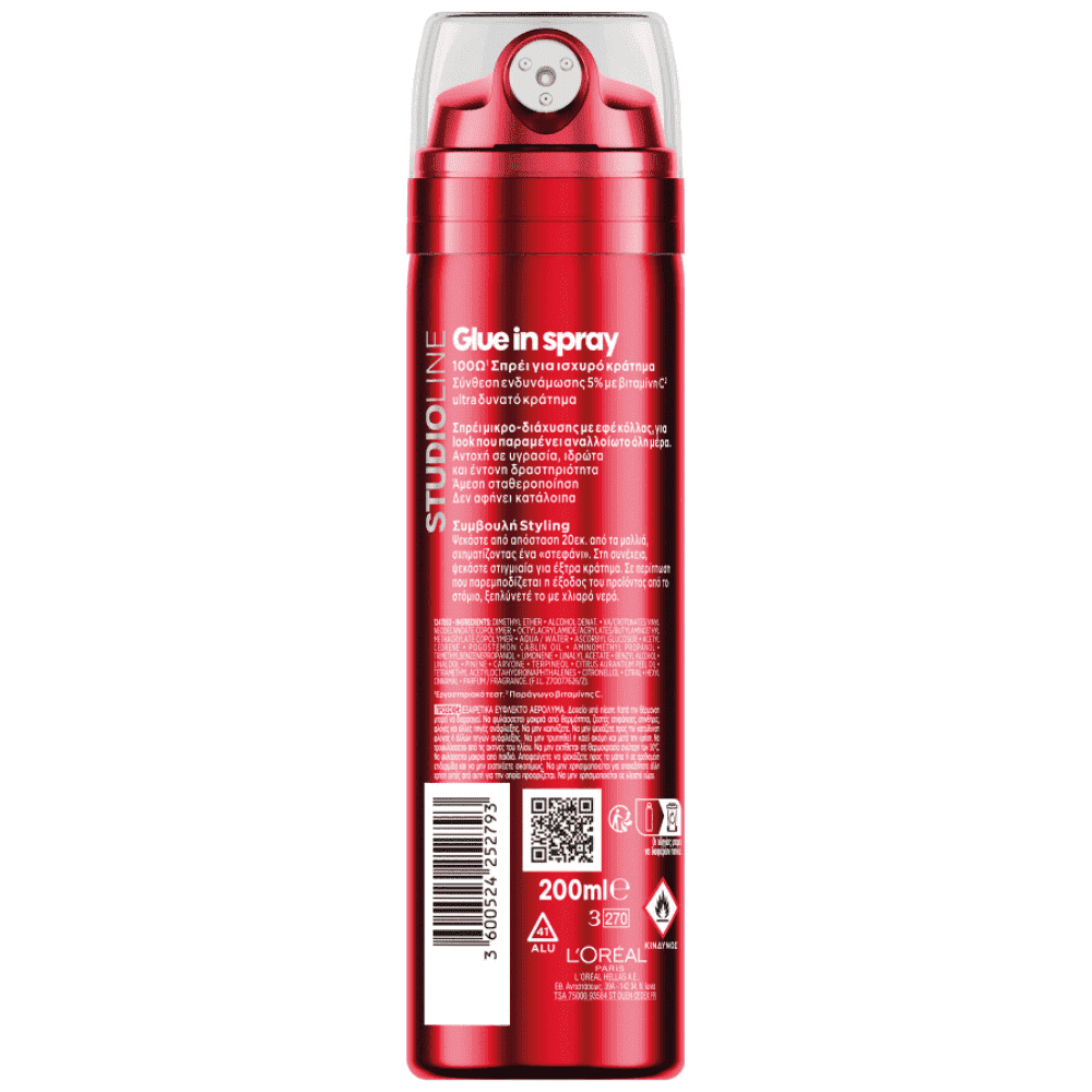 Απόλαυσε το εντυπωσιακό κράτημα 100 ωρών που κρατάει το στυλ σου αψεγάδιαστο. Προστατεύει ενεργά το χτένισμά σου από την υγρασία, τον ιδρώτα και κάθε σου κίνηση, μέρα και νύχτα. Η σύνθεσή του προσφέρει άμεση σταθεροποίηση χωρίς να αφήνει κατάλοιπα, ενώ είναι εμπλουτισμένη με 5% σύμπλεγμα ενδυνάμωσης και Βιταμίνη C για να διατηρεί τη ζωντάνια των μαλλιών σου όσο το look σου μένει ""κλειδωμένο"" στη θέση του. L'Oreal Paris, 14, rue Royale - 75008 Paris France, consumercare@gr.oaccare.com"