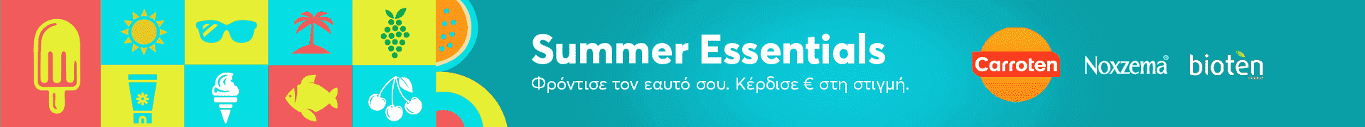 Mε την αγορά προϊόντων Carroten, Noxzema ή Bioten αξίας 20€ και άνω, κερδίζεις επιτόπου 5€ στο καλάθι σου.