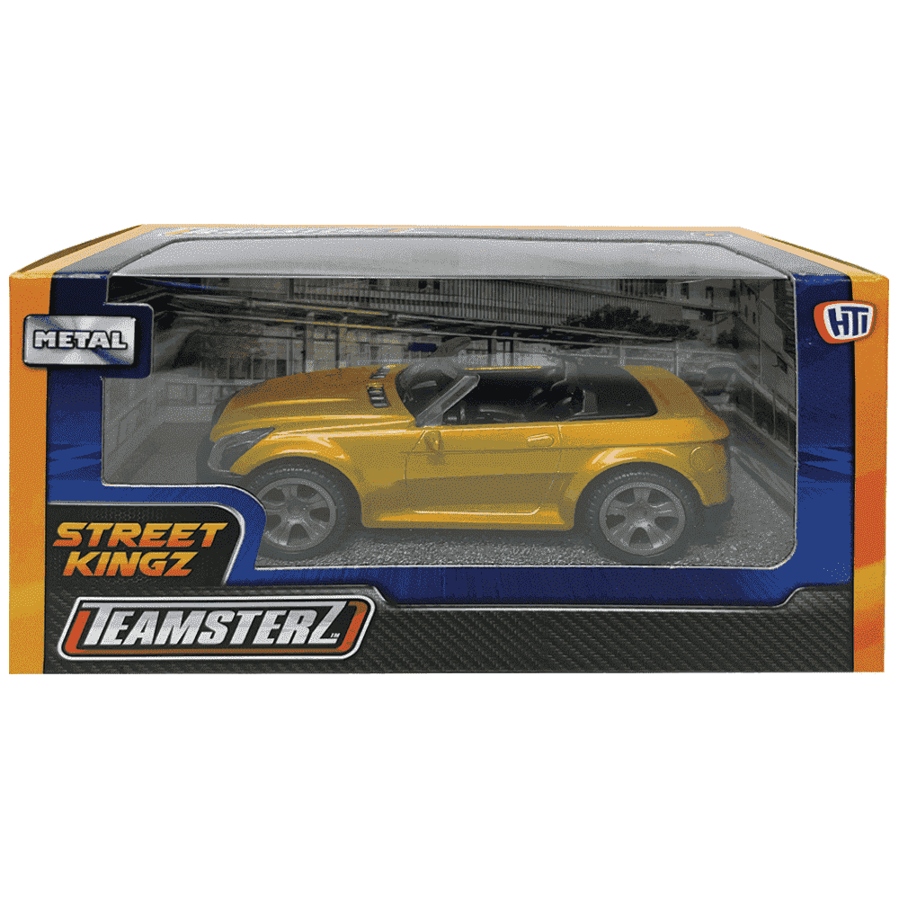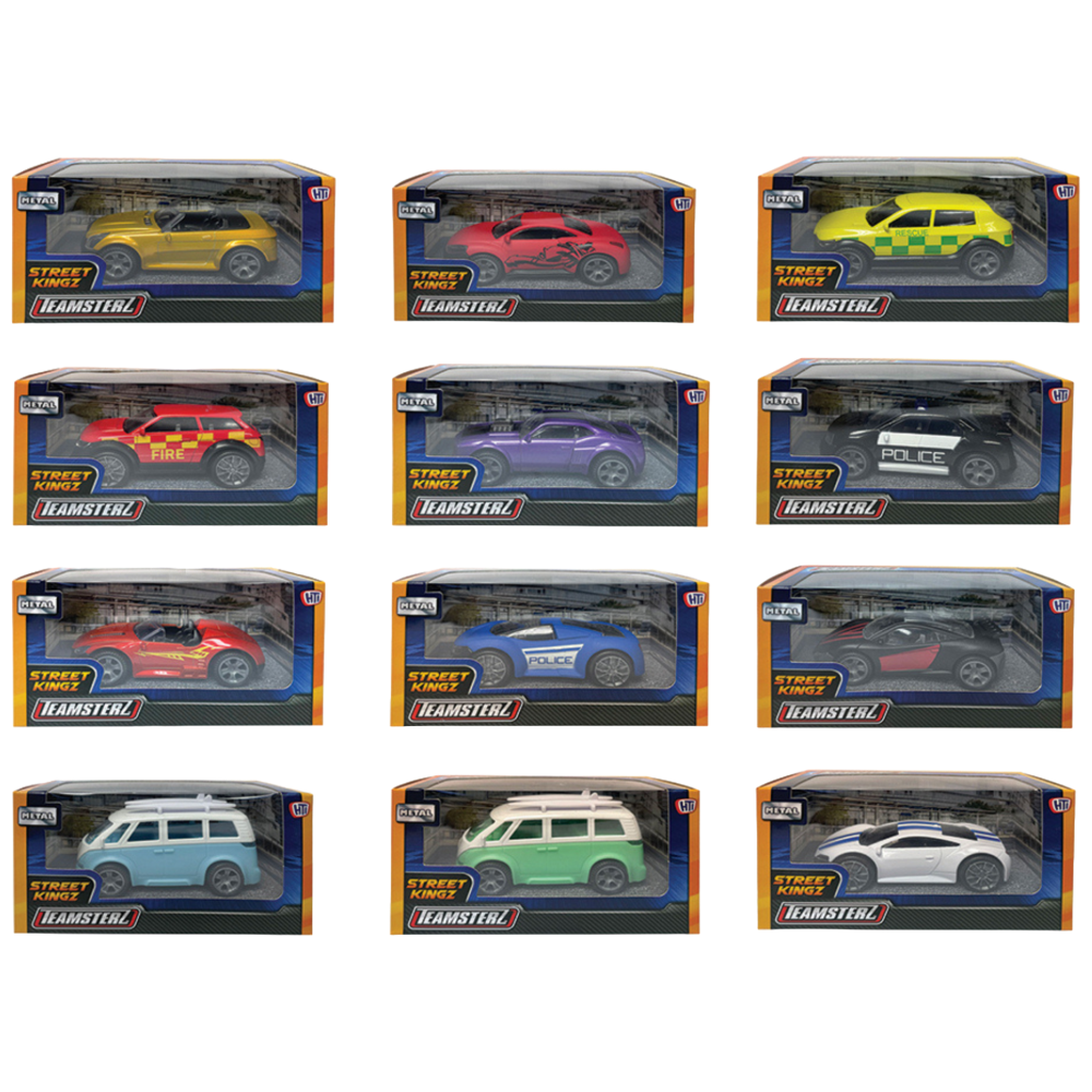 Street Kingz Κλίμακα: 1:43 Metal Η Teamsterz είναι ένα καταξιωμένο brand που περιλαμβάνει μια μεγάλη γκάμα προϊόντων σχετικά με τα οχήματα. Με κατηγορίες όπως die-cast, οχημάτων με φώτα και ήχους, οχήματα που κινούνται και σετ με πίστες ταχύτητας αποτελεί μια ολοκληρωμένη λύση για τις ανάγκες των παιδιών. Τα οχήματα είναι ένα αγαπημένο μοτίβο παιχνιδιού που διεγείρει τις αισθήσεις των παιδιών και συμβάλλει θετικά στην ανάπτυξή τους. Τα οχήματα της Teamsterz είναι κατασκευασμένα από υλικά υψηλής ποιότητας και αντοχής.