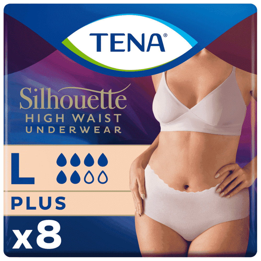 TENA Silhouette Plus Creme Large |Εσώρουχο Ακράτειας σε κρεμ χρώμα, 9 τεμαχίων Το γυναικείο εσώρουχο για την ακράτεια TENA Silhouette Plus Creme έχει εμφάνιση και αίσθηση ακριβώς όπως τα κανονικά εσώρουχα και επιπλέον είναι σχεδιασμένο για μέτριας έως βαριάς μορφής ακράτεια. Σε κρεμ χρώμα στο εσωτερικό και στο εξωτερικό μέρος, είναι κομψό και όμορφα διακριτικό. Το θηλυκό σχέδιο με ψηλή μέση και το ύφασμα με απαλή εφαρμογή διασφαλίζουν ότι παραμένει άνετα στη θέση του όλη την ημέρα ενώ ο αξιόπιστος απορροφητικός πυρήνας επιπέδου Plus εμποδίζει γρήγορα ακόμα και τις πιο βαριές διαρροές και εξουδετερώνει τις οσμές που σας βοηθούν να μείνετε φρέσκες και θηλυκές όλη την ημέρα.