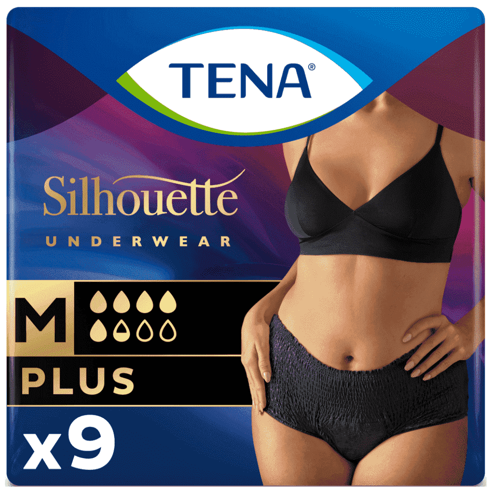 TENA Silhouette Plus Noir Medium |Μαύρο Εσώρουχο Ακράτειας, 8 τεμαχίων Πλέον δεν χρειάζεται να επιλέγετε μεταξύ προστασίας και στυλ. Το TENA Silhouette Plus Noir είναι ένα κομψό μαύρο εσώρουχο για την ακράτεια, που προστατεύει αποτελεσματικά από τη μέτρια έως μεγάλη αδυναμία της ουροδόχου κύστης. Είναι όμορφο και διακριτικό, χάρη στο μαύρο χρώμα που έχει μέσα κι έξω, που του δίνει την όψη κανονικού εσώρουχου. Ύφασμα μαλακής εφαρμογής που αναπνέει και επιτρέπει στο εσώρουχο να εφαρμόζει με άνεση και ασφάλεια, ενώ παράλληλα ο αξιόπιστος απορροφητικός πυρήνας Plus εγκλωβίζει γρήγορα ακόμη και τις μεγαλύτερες διαρροές, διατηρώντας την επιδερμίδα σας στεγνή, εξουδετερώνοντας τις οσμές και αφήνοντάς σας μια αίσθηση φρεσκάδας και θηλυκότητας.