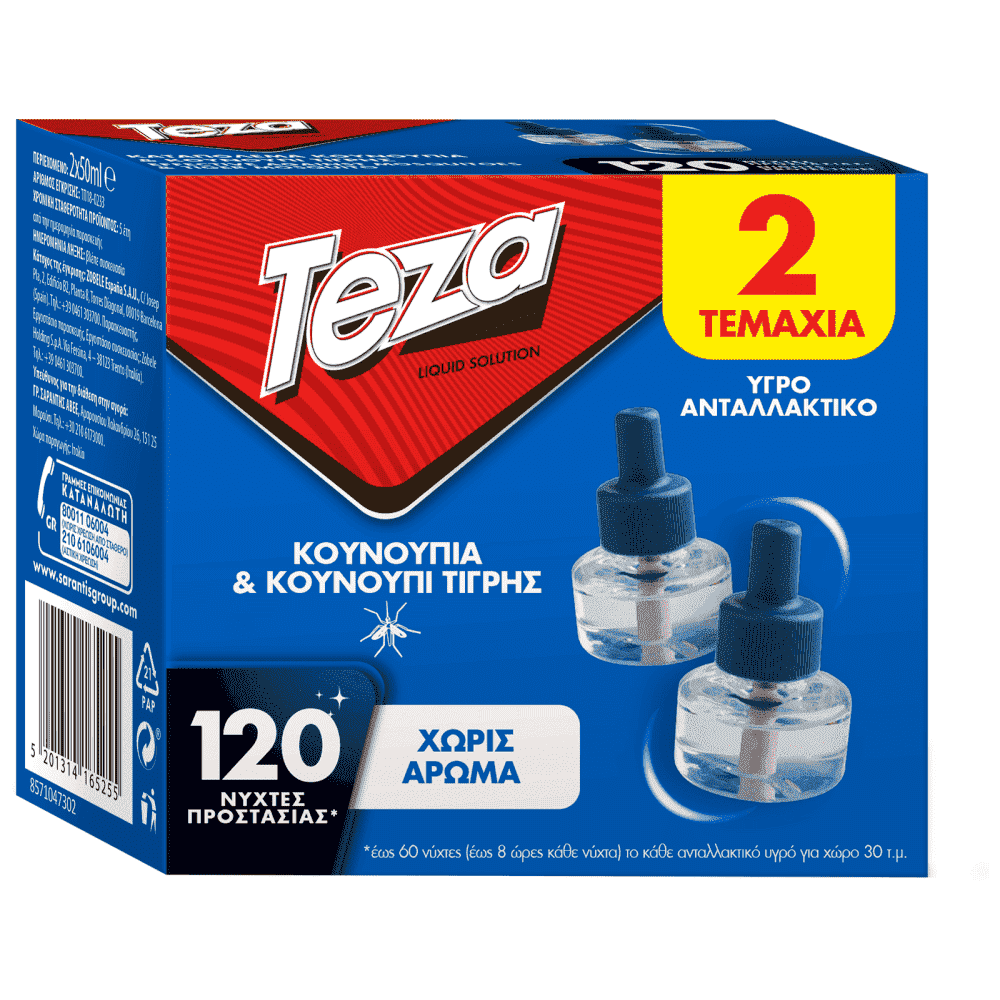 Το ΤΕΖΑ Υγρό Ανταλλακτικό είναι εντομοκτόνο χωρίς άρωμα και καταπολεμά κουνούπια, σκνίπες και το κουνούπι τίγρης. Οι ατμοί που αναδύονται κατά την διάρκεια της θέρμανσης του φιτιλιού καταπολεμούν τα ενοχλητικά έντομα που υπάρχουν στον χώρο. Κάθε φιαλίδιο ΤΕΖΑ LIQUID μπορεί να καλύψει χώρο 40 κυβικών μέτρων περίπου. Η δράση του διαρκεί 60 νύχτες όταν χρησιμοποιείται για 8 συνεχόμενες ώρες (όλη τη νύχτα) κάθε φορά.