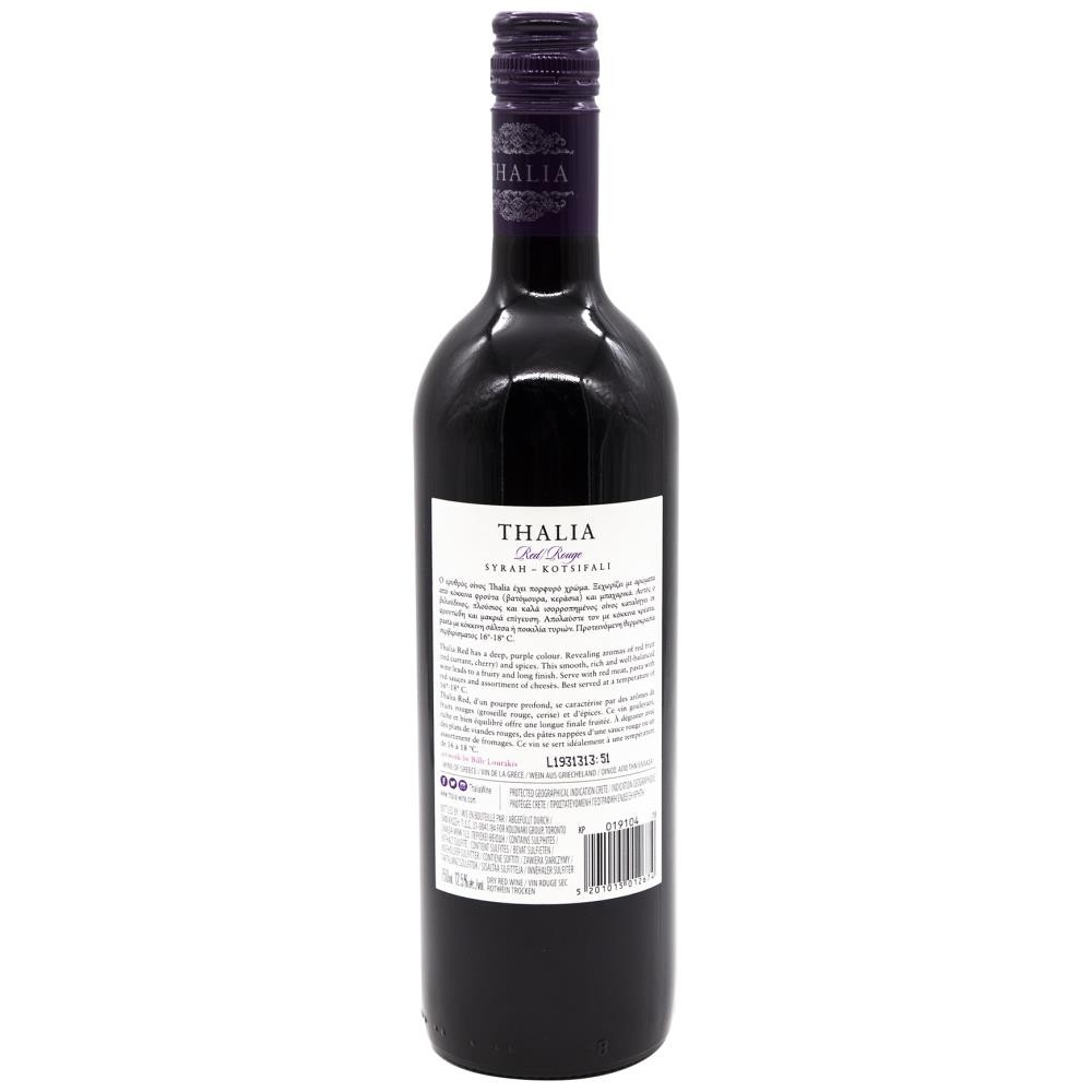 Ένα από τα πιο value for money κρασιά της χώρας. Φινετσάτο, φρουτένιο και σοβαρό. H Thalia είναι η μούσα της έμπνευσης, της ευθυμίας και της ευπρεπούς διασκέδασης. Στοιχεία που και το κρασί αυτό προσπαθεί να υπηρετήσει και το κάνει με τον καλύτερο τρόπο. Είναι ένα κρασί που, παρότι από την Κρήτη, ξεκίνησε την καριέρα του στο εξωτερικό.