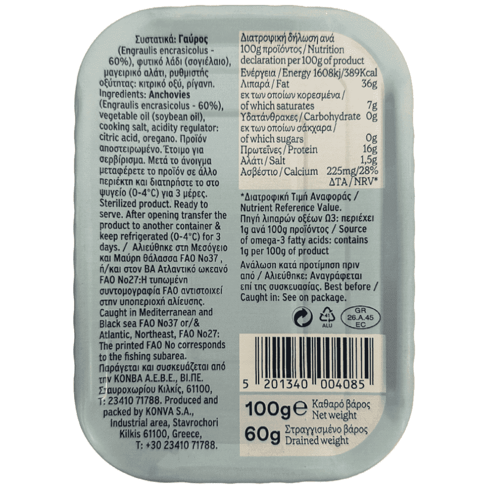 Αλιευμένος στα νερά του Βορείου Αιγαίου που εξασφαλίζουν τη μοναδική του γεύση, ο γαύρος TRATA συνιστά μια ιδανική πρόταση για ισορροπημένη διατροφή, πλούσια σε ιχνοστοιχεία, ασβέστιο και Ω3. Ο αγαπημένος ελληνικός μεζές αποτελεί ένα πεντανόστιμο ορεκτικό, αλλά και μια θρεπτική πρώτη ύλη για γευστικές σαλάτες και σνακ, χωρίς συντηρητικά. Η ελληνική ρίγανη και το «απαλό» φυτικό λάδι συνοδεύουν άψογα τα φυσικά αρωματικά συστατικά του φρέσκου γαύρου και δημιουργούν ένα απολαυστικό πιάτο!
