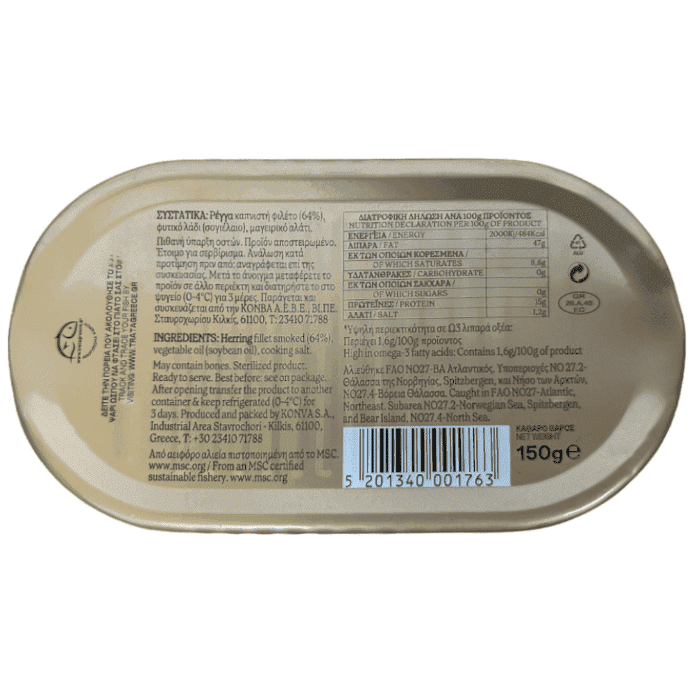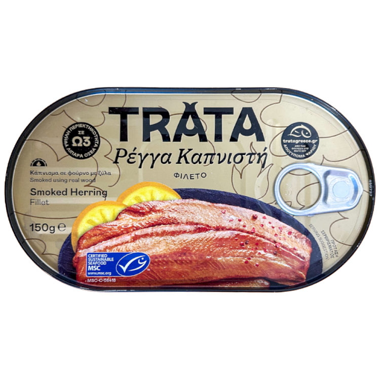 H καπνιστή ρέγγα TRATA περιέχει τρυφερά φιλετάκια ρέγγας, σε φυτικό λάδι που έχουν καπνιστεί σε καπνιστήριο με ξύλα στον χώρο του εργοστασίου μας, με ιδιαίτερη μελέτη κάτα την διάρκεια ώστε να υπάρχει ισορροπία γεύσης. Χρησιμοποιούνται ειδικών προδιαγραφών υλικά προκειμένου να λάβουμε ένα ασφαλές Καπνιστό Προϊόν, αναδεικνύοντας ώριμη οσμή και γεύση. Η ρέγγα TRATA διατηρεί την χαρακτηριστική και πλούσια γεύση του καπνιστού ψαριού με διακριτική αλατότητα.