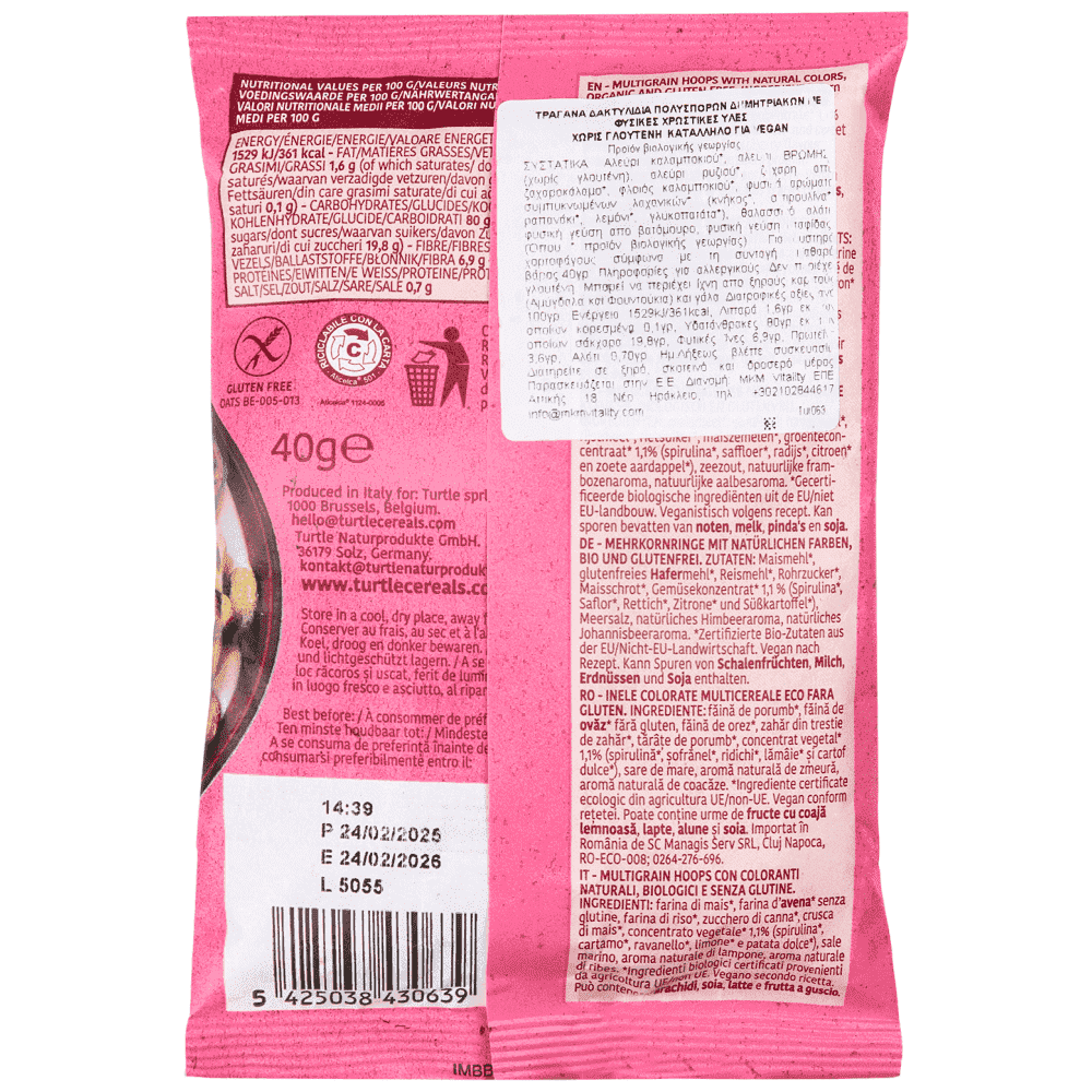 Turtle Τραγανά Δακτυλίδια Δημητριακών Bio Χωρίς Γλουτένη 40gr