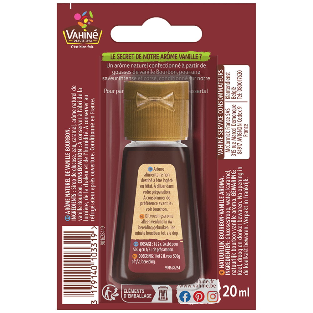 Εξαιρετικής ποιότητας, φυσικό άρωμα βανίλιας. Ιδανικό για να αρωματίσει οποιοδήποτε γλυκό! Το ειδικά σχεδιασμένο καπάκι έκχυσης το κάνει ιδιαίτερα πρακτικό.