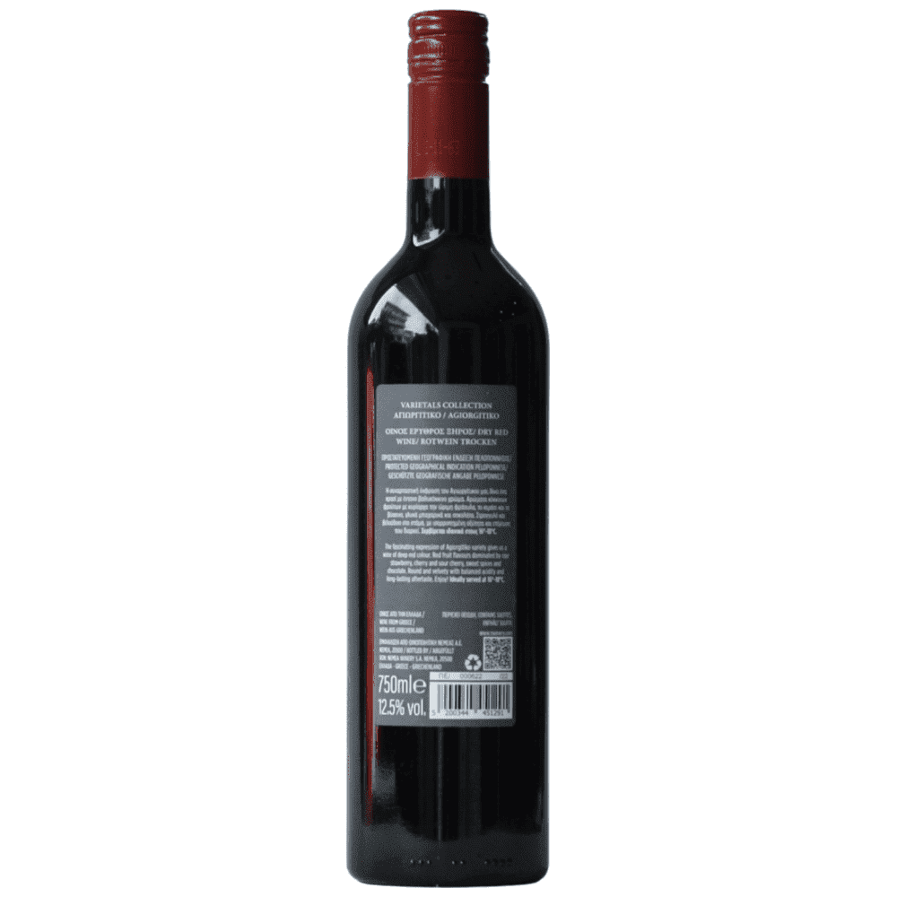Η συναρπαστική έκφραση του Αγιωργίτικου μας δίνει ένα κρασί με έντονο βαθυκόκκινο χρώμα. Αρώματα κόκκινων φρούτων με κυρίαρχα την ώριμη φράουλα, το κεράσι και το βύσσινο, γλυκά μπαχαρικά και σοκολάτα. Στρογγυλό και βελούδινο στο στόμα, με ισορροπημένη οξύτητα και επίγευση που διαρκεί.
