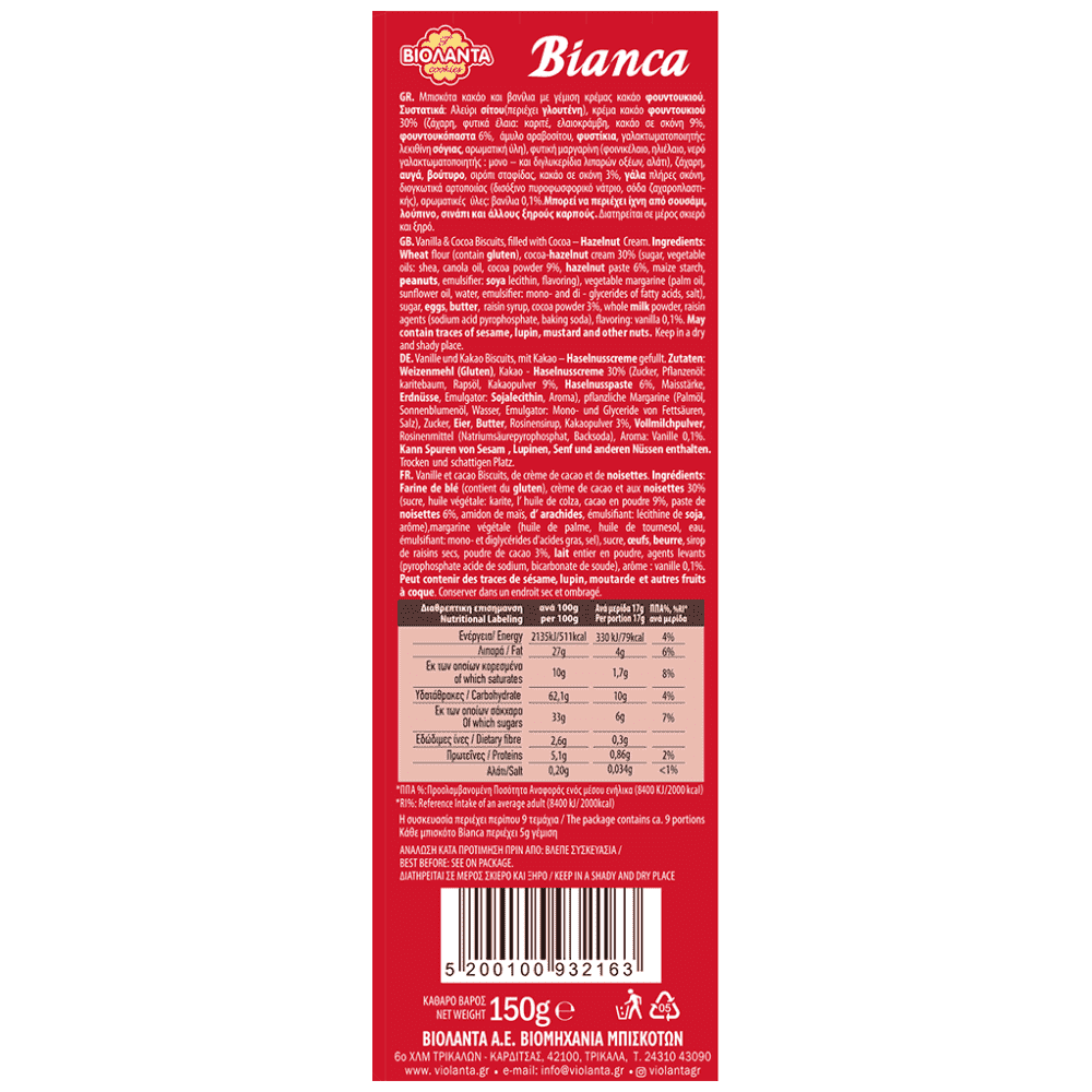 Αλεύρι σίτου, φουντουκόπαστα, φυστίκια, λεκιθίνη σόγιας, αυγά, βούτυρο, γάλα πλήρες σκόνη