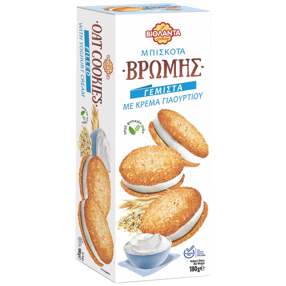 Δημητριακά 33%(αλεύρι βρώμης 20%, αλεύρι σίτου 9%, πίτυρο βρώμης 3%, νιφάδες βρώμης 1%), κρέμα γιαουρτιού 25% [φυτικό έλαιο (ελαιοφοίνικα), ζάχαρη,  γάλα σε σκόνη, γιαούρτι σε σκόνη 13%, βούτυρο αγελαδινό, ΓΙΑΟΥΡΤΙ στραγγιστό 0,8% (γάλα, ανθόγαλα,  καλλιέργεια γιαούρτης), ινουλίνη, αρωματικές ύλες], φυτικά λίπη και έλαια (ελαιοφοίνικα, ηλίανθου, νερό, γαλακτωματοποιητής: μονο- και διγλυκερίδια λιπαρών οξέων, αλάτι), ζάχαρη, μέλι, γιαούρτι στραγγιστό 2%[ γάλα, ανθόγαλα,  καλλιέργεια γιαούρτης], ζάχαρη καστανή,  διογκωτικά αρτοποιίας ( διττανθρακική σόδα, διττανθρακικό αμμώνιο), αλάτι, αρωματικές ύλες. Αλλεργιογόνα