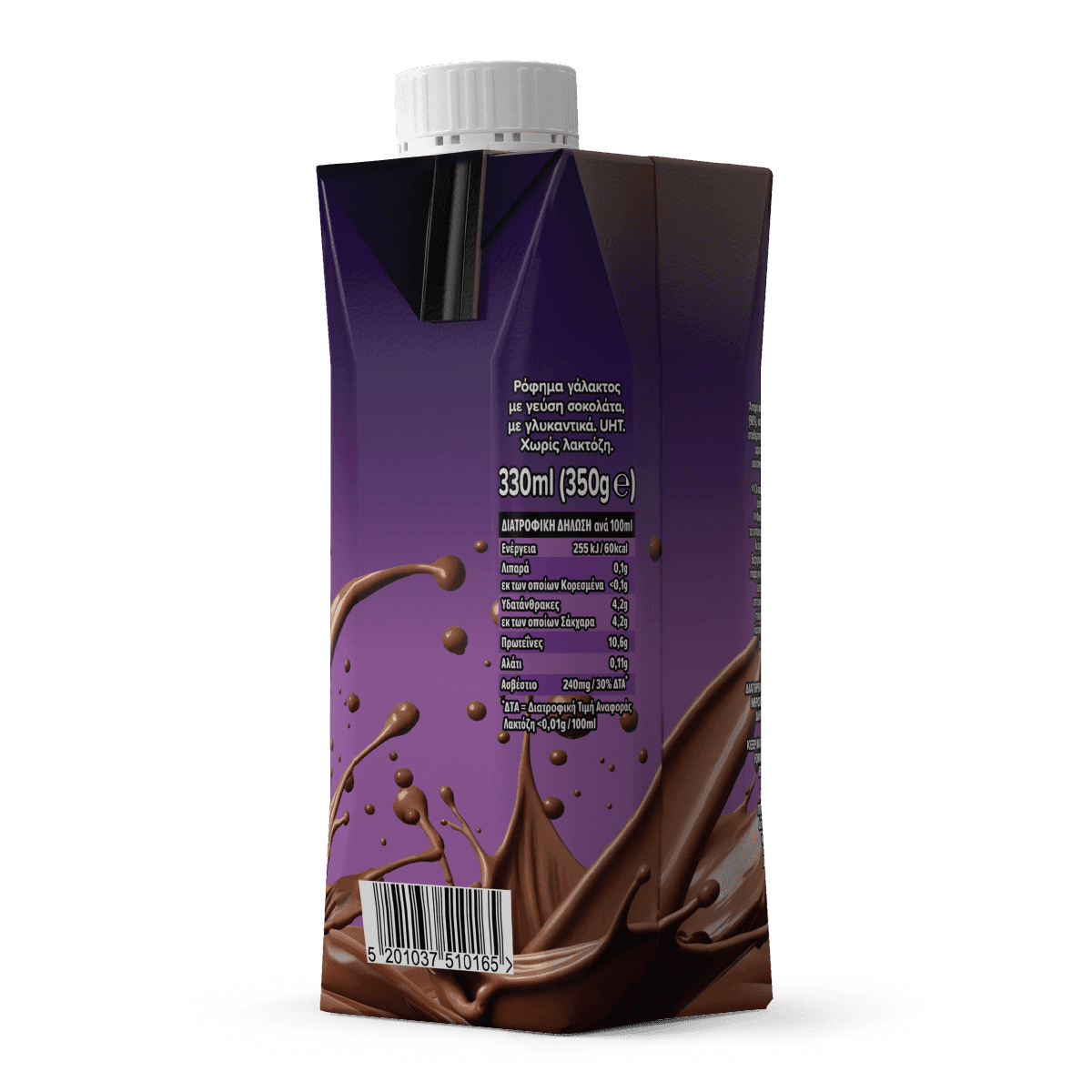 Άπαχο γάλα και πρωτεΐνη γάλακτος (98%), κακάο σε σκόνη (1%), λακτάση, σταθεροποιητής: καραγενάνη, φυσική αρωματική ύλη, γλυκαντικά: ακεσουλφάμη Κ και σουκραλόζη.