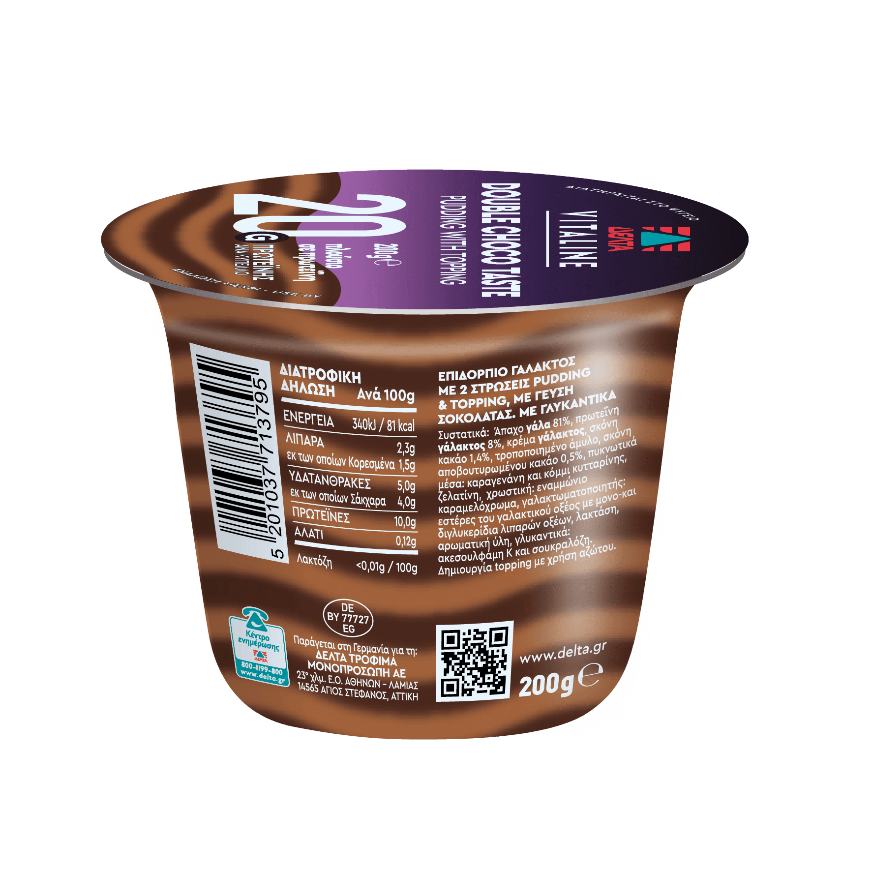 ΔΕΛΤΑ VITALINE DOUBLE CHOCO TASTE PUDDING WITH TOPPING