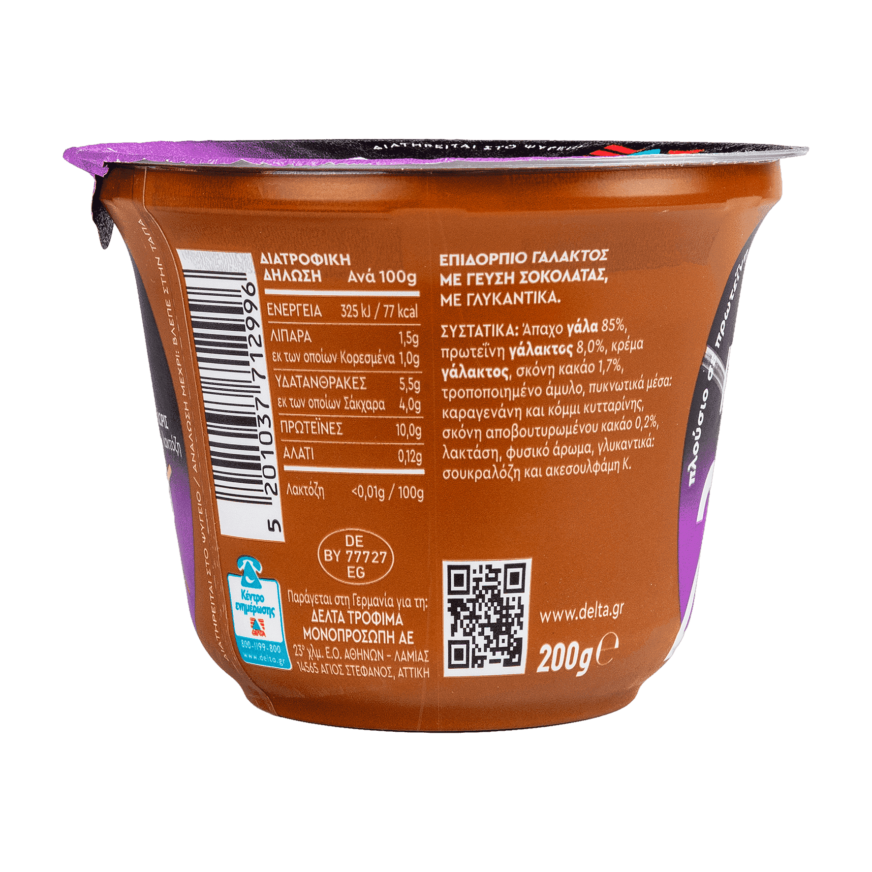 Επιδόρπιο γάλακτος με γεύση σοκολάτας, με γλυκαντικά.