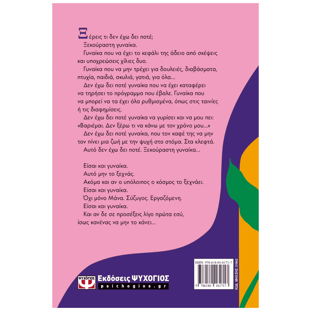 Είσαι και γυναίκα. Αυτό μην το ξεχνάς. Ακόμα και αν ο υπόλοιπος κόσμος το ξεχνάει. Είσαι και γυναίκα. Όχι μόνο Μάνα. Σύζυγος. Εργαζόμενη. Είσαι και γυναίκα. Και αν δε σε προσέξεις λίγο πρώτα εσύ, ίσως κανένας να μην το κάνει;