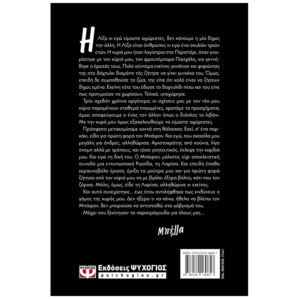 Η Λίζα κι εγώ είμαστε αχώριστες, δεν κάνουμε η μία δίχως την άλλη. Η Λίζα είναι άνθρωπος κι εγώ ένα σκυλάκι τριών ετών. Η κυρά μου ήταν λογίστρια στο Περιστέρι, όταν γνωρίστηκε με τον κύριό μου, τον φρουτέμπορα Πασχάλη, και γεννήθηκε ο έρωτάς τους. Πολύ σύντομα εκείνος γονάτισε και φορώντας της στο δάχτυλο διαμάντι τής ζήτησε να γίνει γυναίκα του. Όμως, επειδή δε συμπαθούσε τα ζώα, της είπε ότι καλό είναι να ζήσουν δίχως εμένα. Εκείνη τότε του έδωσε το δαχτυλίδι πίσω και του είπε πως προτιμούσε να χωρίσουν. Τελικά, υποχώρησε.