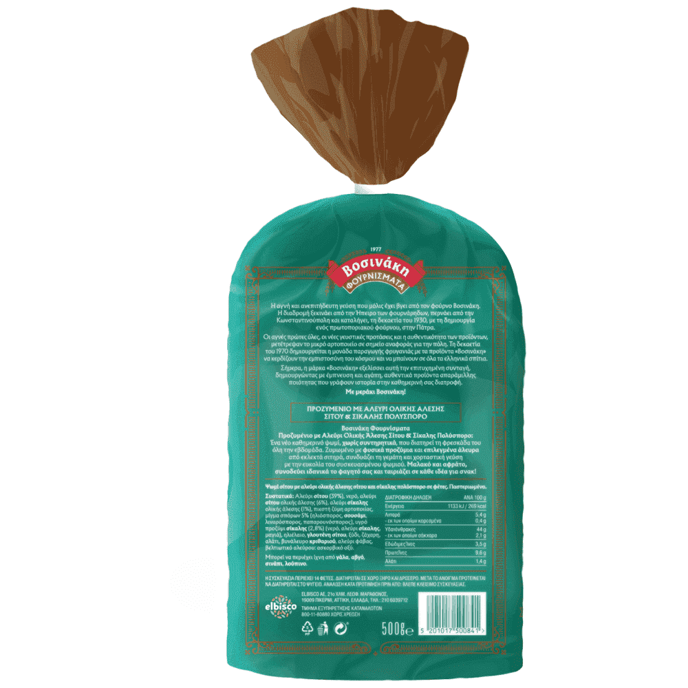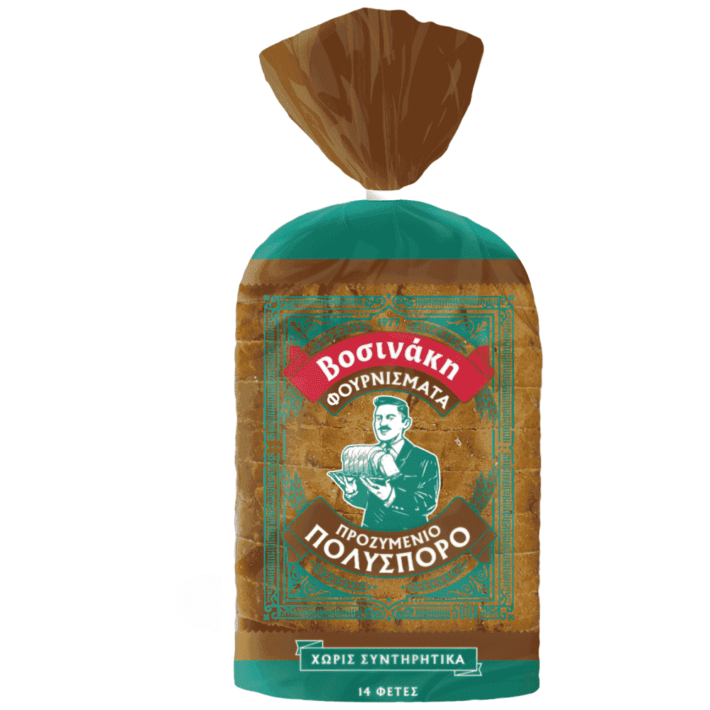 Ένα νέο καθημερινό ψωμί, χωρίς συντηρητικά, που διατηρεί την φρεσκάδα του όλη την εβδομάδα. Ζυμωμένο με φυσικά προζύμια και επιλεγμένα άλευρα από εκλεκτά σιτηρά, συνδυάζει τη γεμάτη και χορταστική γεύση με την ευκολία του συσκευασμένου ψωμιού. Μαλακό και αφράτο όλη την εβδομάδα, συνοδεύει ιδανικά το φαγητό σας και ταιριάζει σε κάθε ιδέα σνακ!Με μεράκι Βοσινάκη! Elbisco αε 21ΧΛΜ.Λεωφ. Μαραθώνος, Πικέρμι, ΤΚ 19009,Τηλ. 210 6039703 ή 210 6039712.