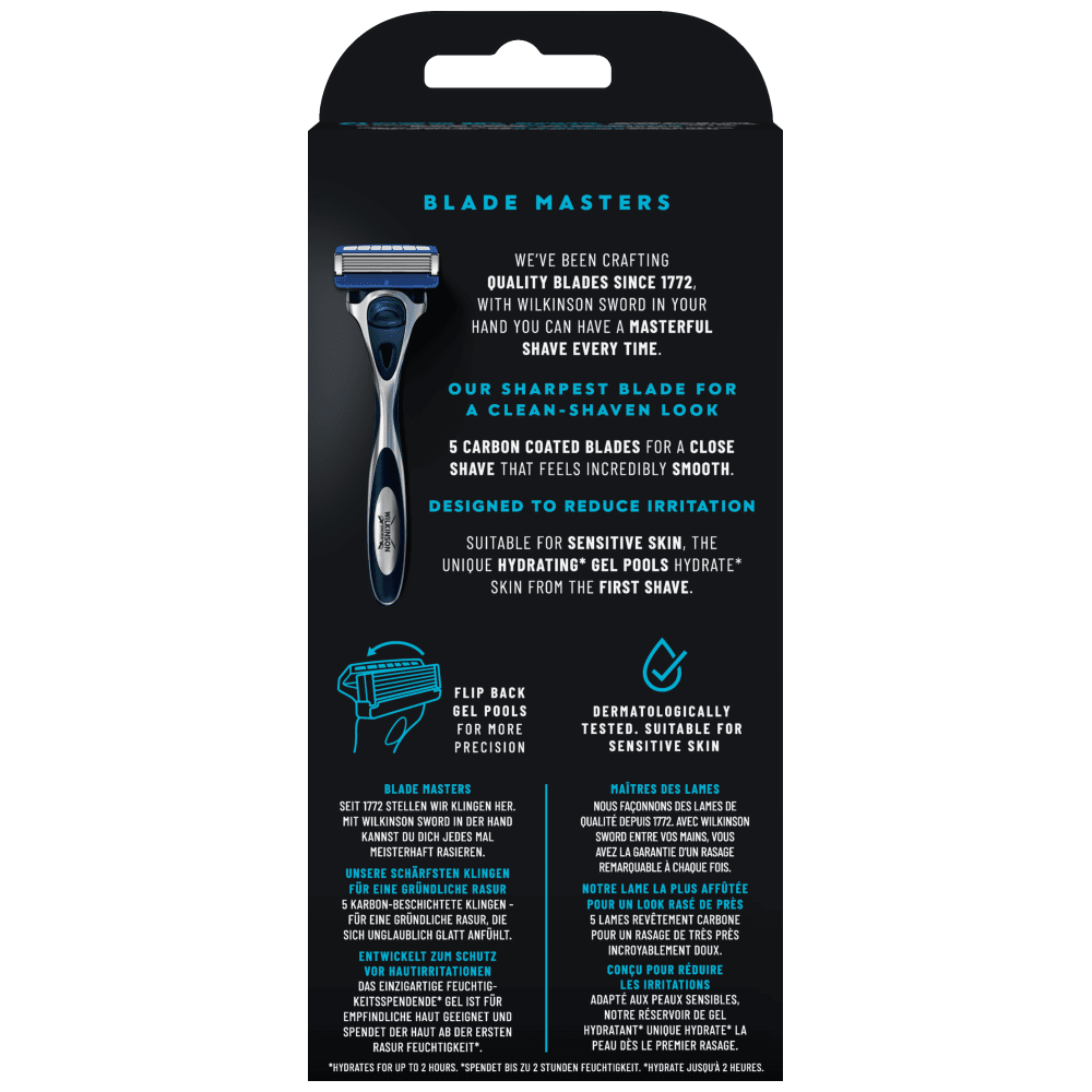 Η Wilkinson Sword ακονίζει το ανδρικό στυλ από το 1772. Βασισμένα σε πάνω από δύο αιώνες εφευρέσεων και μηχανικής, τα ανδρικά προϊόντα ξυρίσματος της Wilkinson Sword συνδυάζουν την κομψή πρακτικότητα με την καινοτομία που αλλάζει το παιχνίδι και έχουμε ένα πολύ καλό ιστορικό στο να μεταφέρουμε το ξύρισμά σας στο επόμενο επίπεδο. Από τα στιβαρά vintage ξυράφια μας μέχρι τις λεπίδες Ultra Glide και τις δεξαμενές τζελ που ενεργοποιούνται με νερό στη σειρά Hydro μας, η ανδρεία μας στην κατασκευή λεπίδων εκτείνεται μέχρι τα παλιά πεδία μάχης έτσι ξέρουμε ένα ή δύο πράγματα για ένα προσεκτικό ξύρισμα. Για άνεση, ακρίβεια και ομαλό αποτέλεσμα, αφήστε το Wilkinson Sword να ακονίσει το στυλ σας.