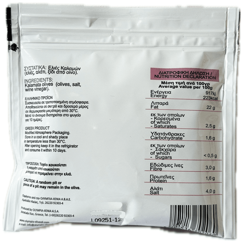 Ιδανικό snack για όλες τις ώρες της ημέρας.nΑποθηκεύεται σε σκιερό και δροσερό μέρος σε θερμοκρασία μικρότερη από 30C.nΜετά το άνοιγμα διατηρείται στο ψυγείο για 10 ημέρες.nnΣυσκευασία με zip για εύκολη χρήση.nΣυσκευασία χωρίς υγράnnΠΡΟΣΟΧΗ: Τυχαίο κουκούτσι ή κομμάτι από κουκούτσι μπορεί να παραμείνει στην ελιά.