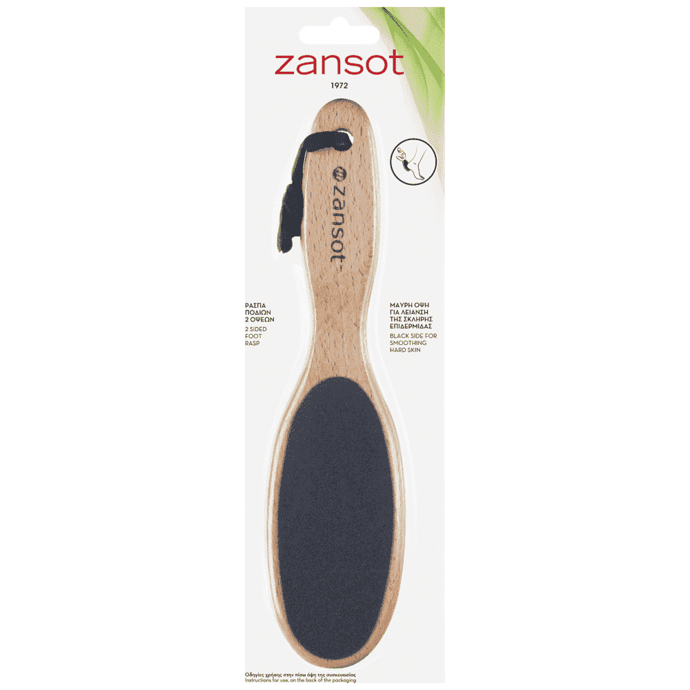 Η ράσπα ποδιών Iansot έχει δύο όψεις. Καφέ όψη: Για την απομάκρυνση των νεκρών κυττάρων από τις πτέρνες και το μετατάρσιο. Μαύρη όψη: Για λείανση της σκληρής επιδερμίδας. Η εργονομική ξύλινη λαβή της είναι άκαμπτη και σας βοηθά να περιποιείστε τα πόδια σα